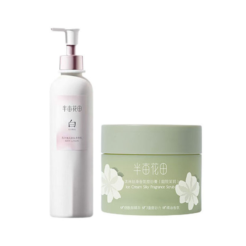 商品名称:(世星阳光)+半亩花田美白透亮香氛身体乳250ml+冰淇淋丝滑香氛磨砂膏(庭院茉莉)250g 新1代面部级磨砂粒子 烟酰胺成分 气味淡雅清新
