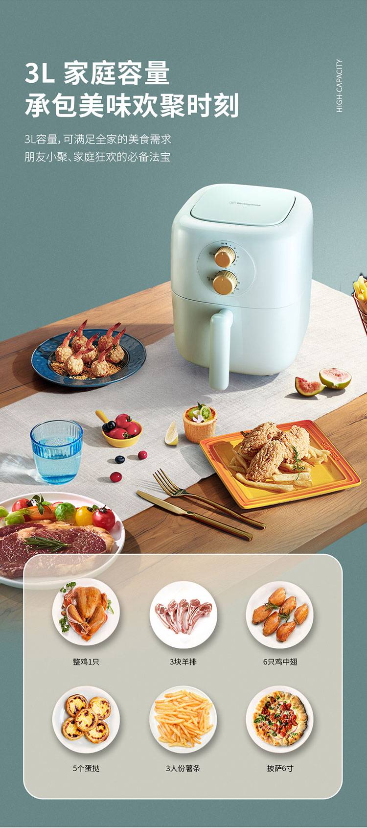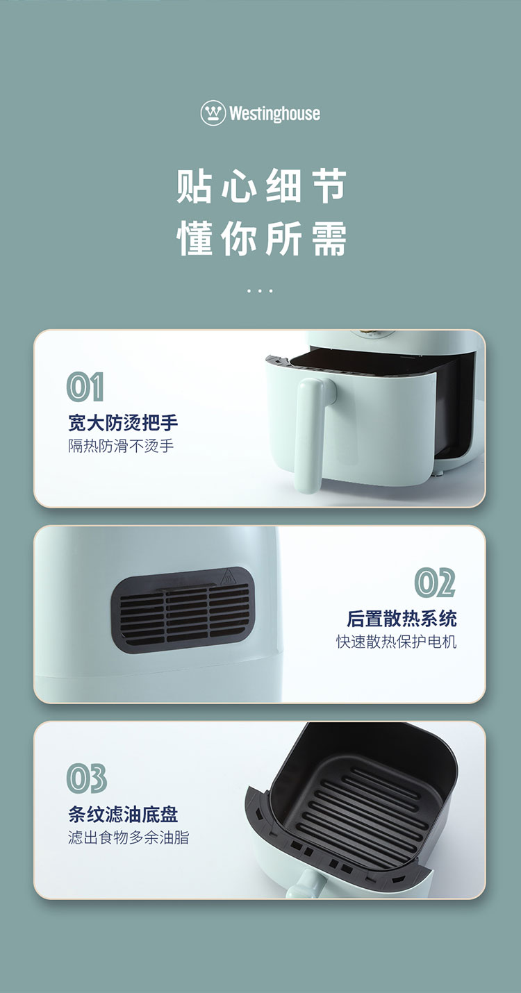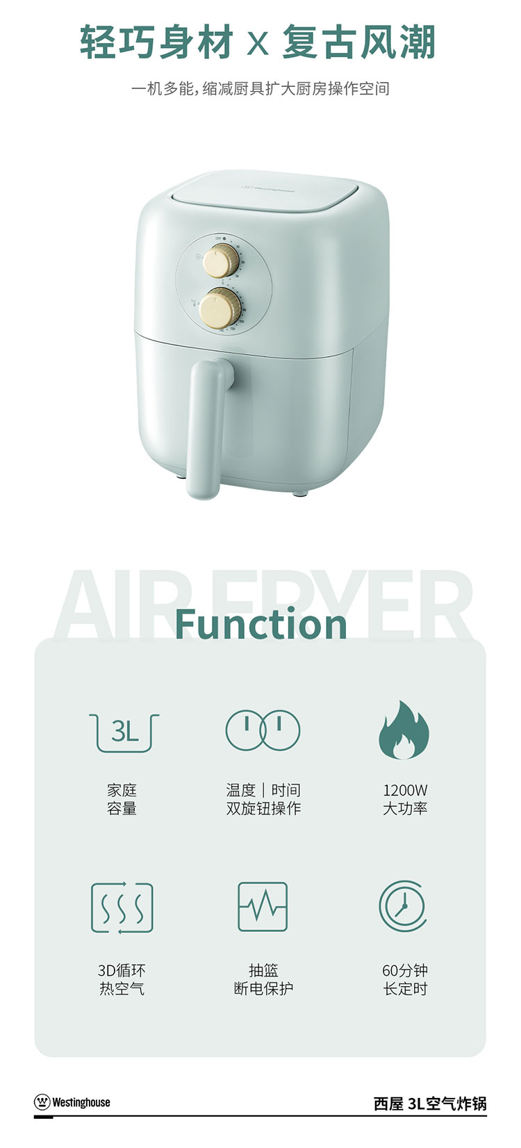 商品名称:(世星阳光)+WY西屋 空气炸锅 3L WAF-LZ3503F 复古双旋钮轻松控时和调温 无需预热随心烹饪优雅告别繁琐的菜单和操作