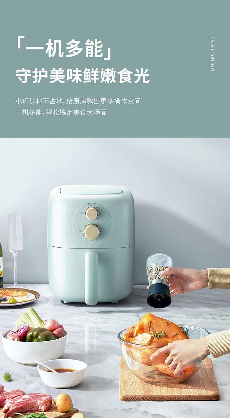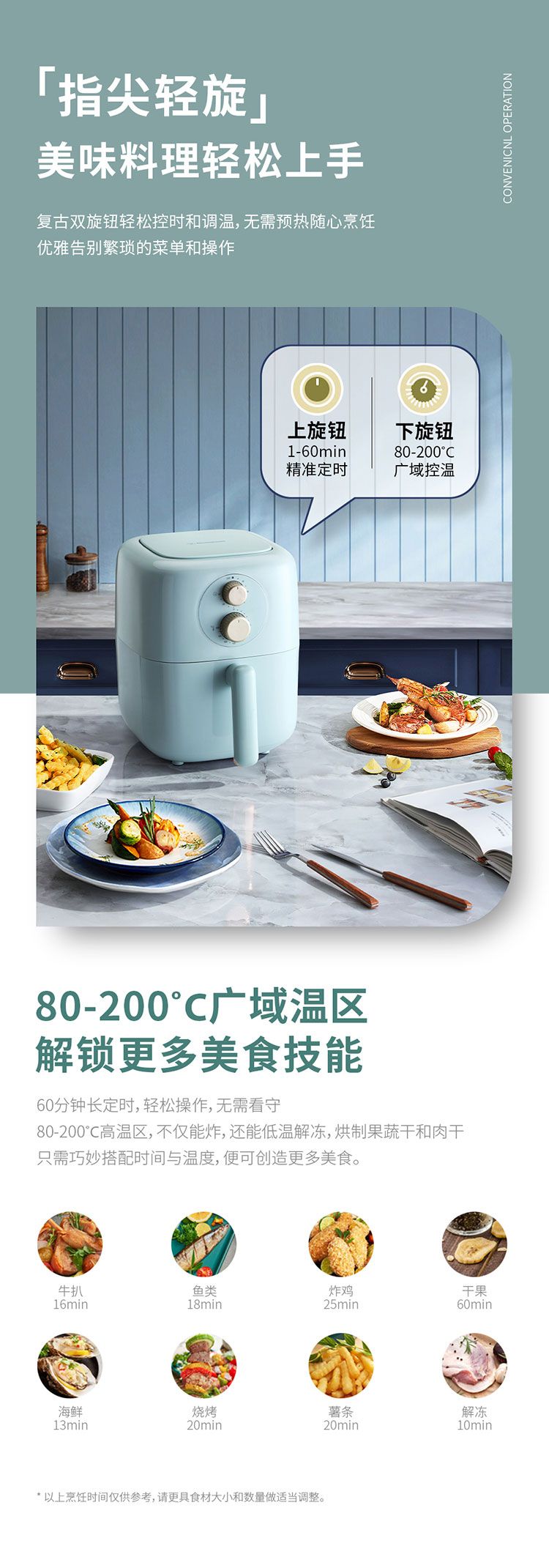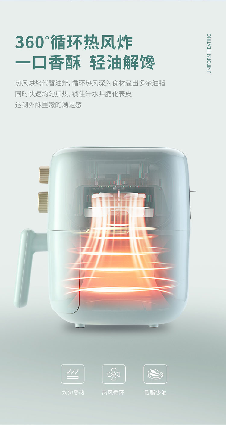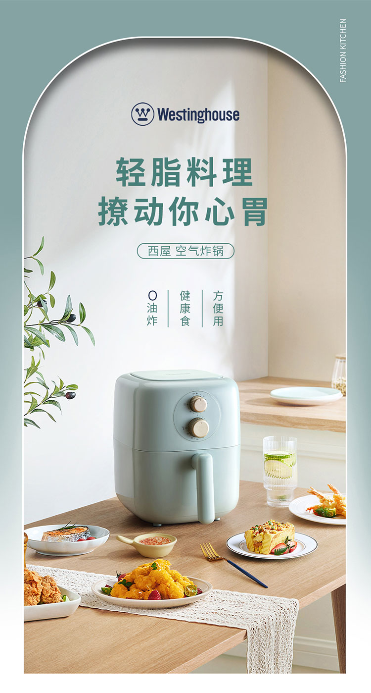 商品名称:(世星阳光)+WY西屋 空气炸锅 3L WAF-LZ3503F 复古双旋钮轻松控时和调温 无需预热随心烹饪优雅告别繁琐的菜单和操作