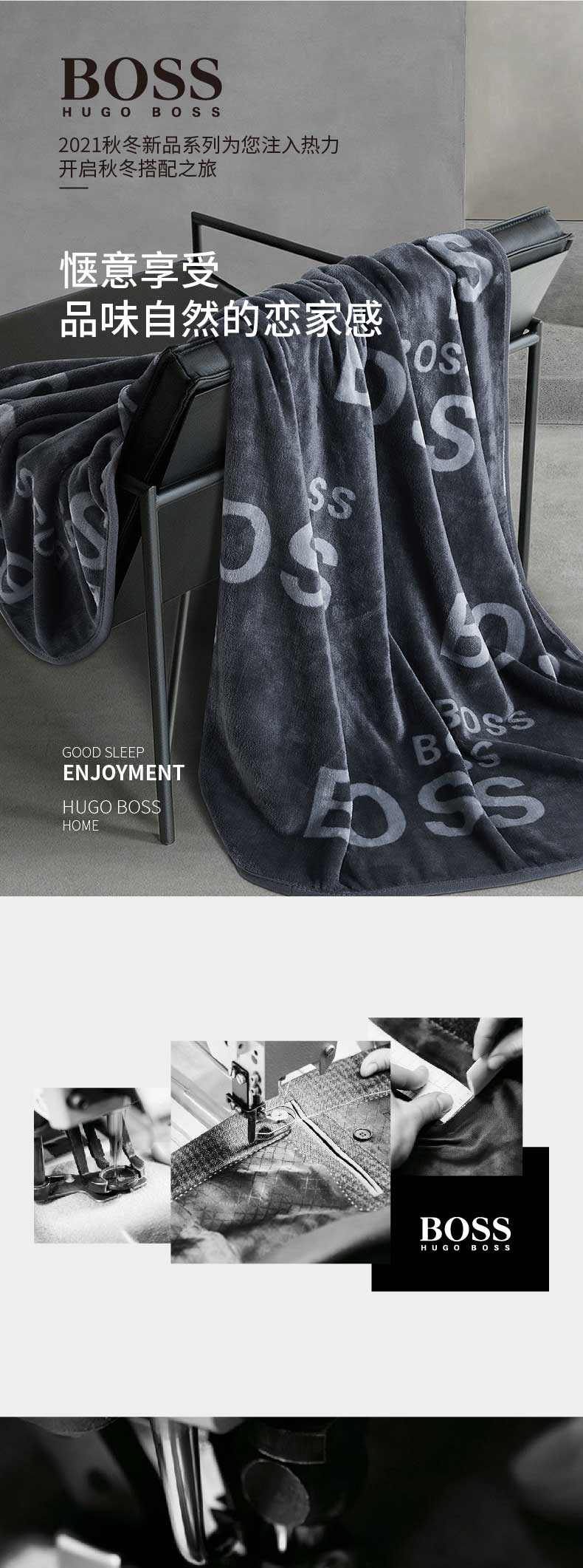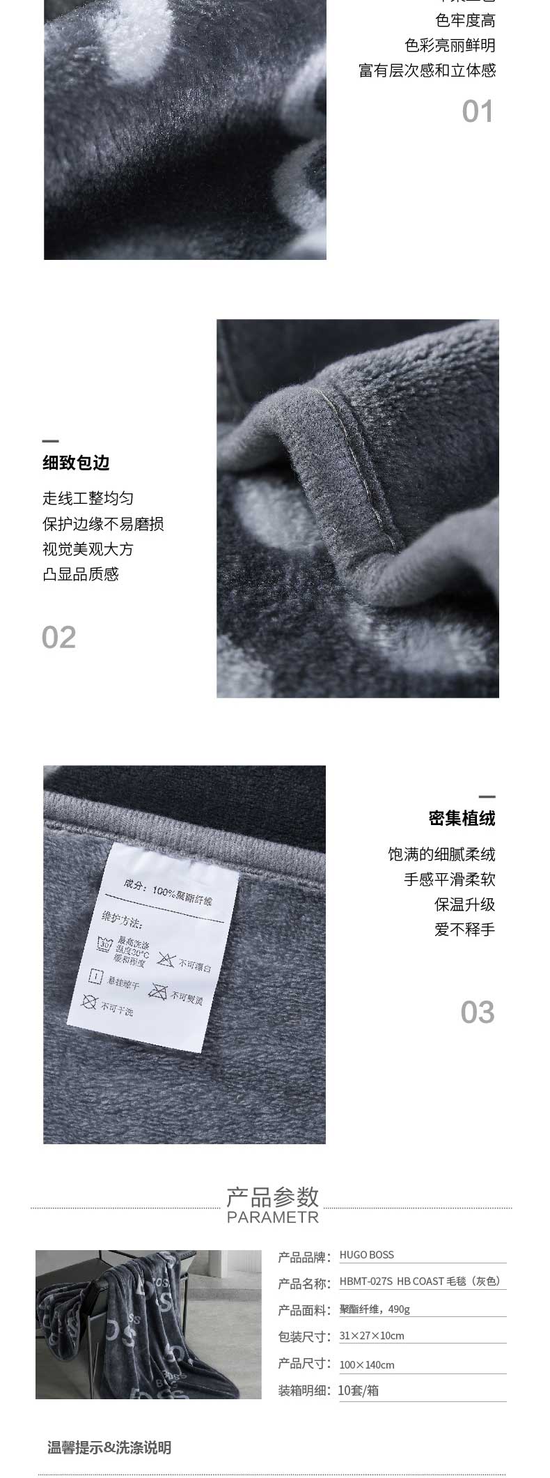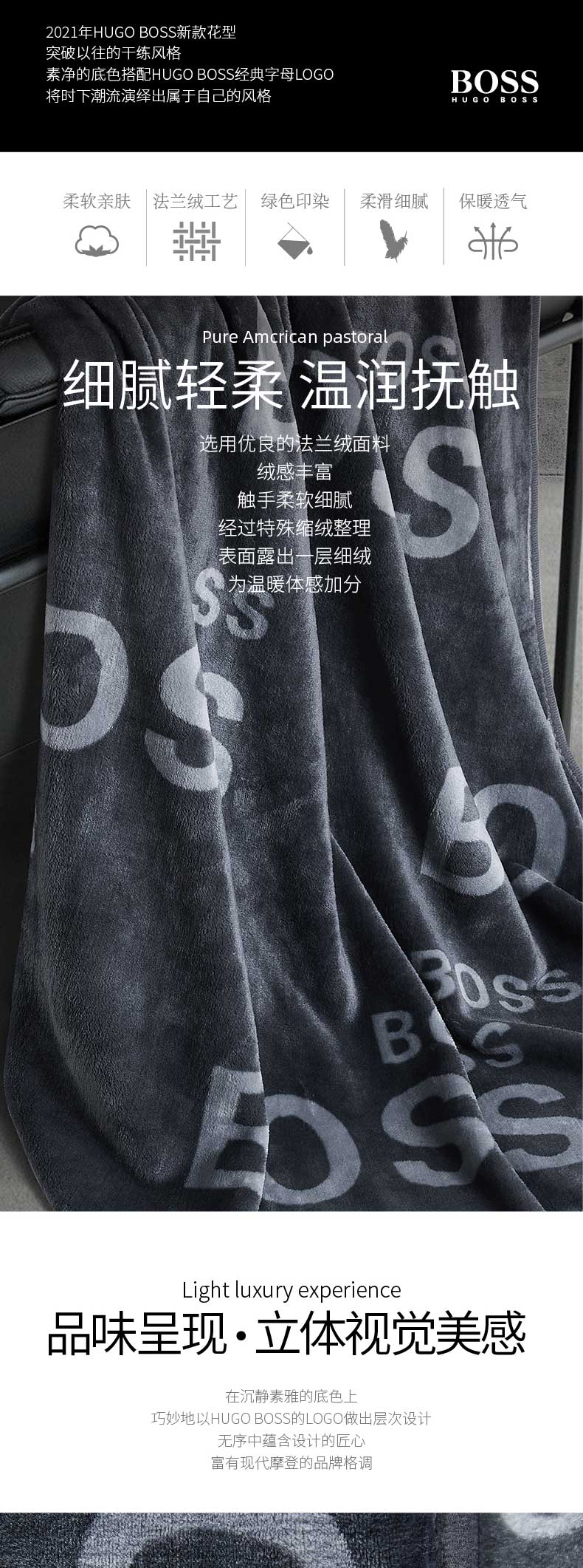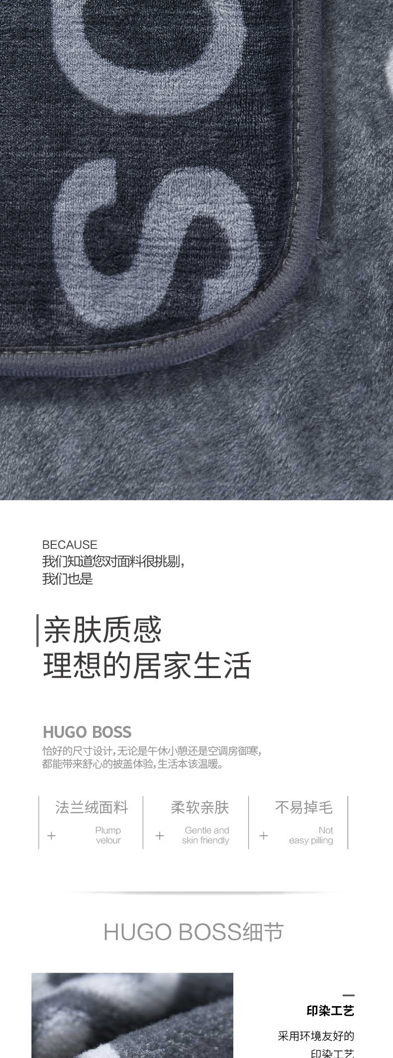 商品名称:(世星阳光)+HUGO BOSS 毛毯灰色 100*140cm 法兰绒面料 柔软亲肤