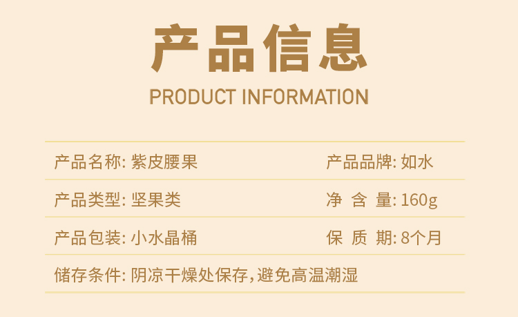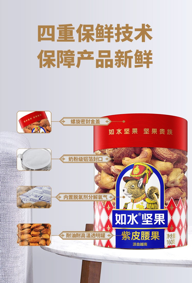商品名称:(超运·禾贸)如水紫皮腰果160g 坚果果干休闲零食