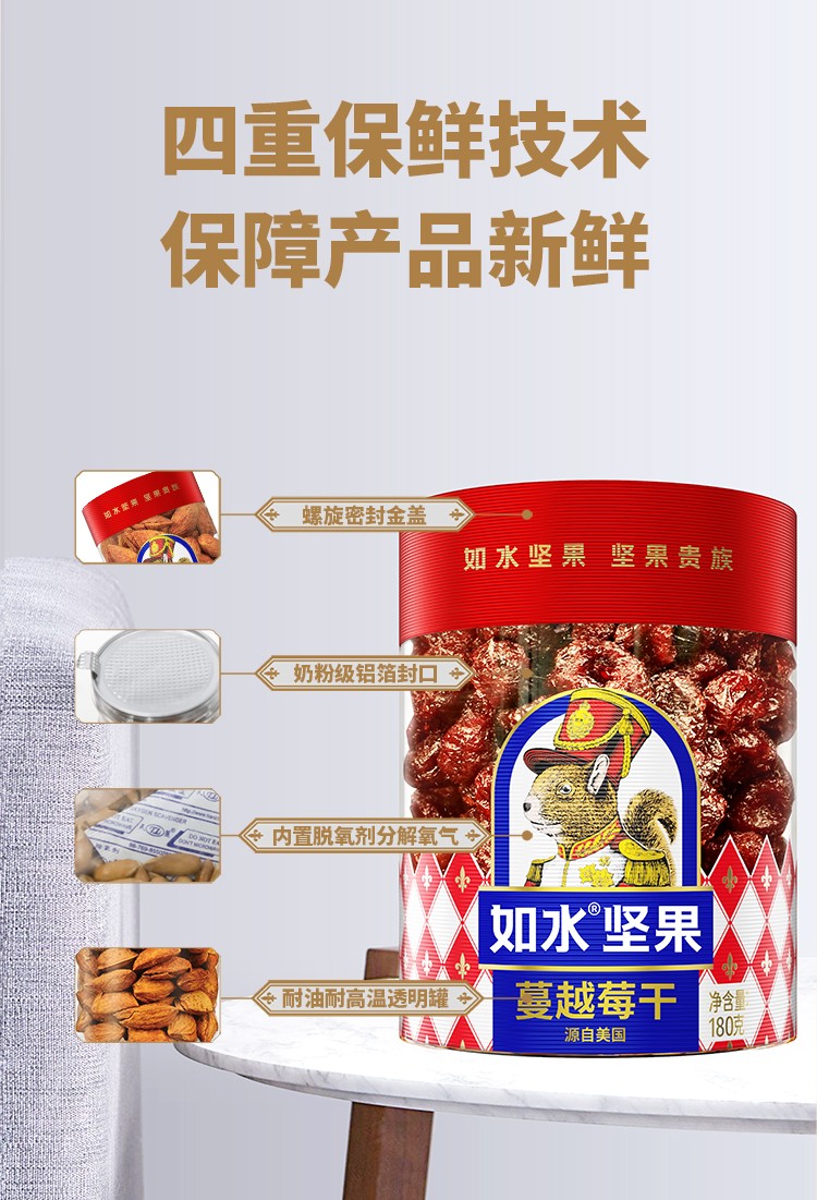 (超运·禾贸)如水蔓越莓干180g 坚果果干休闲零食