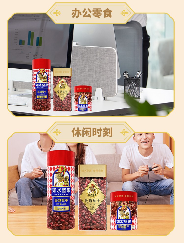 商品名称:(超运·禾贸)如水蔓越莓干180g 坚果果干休闲零食