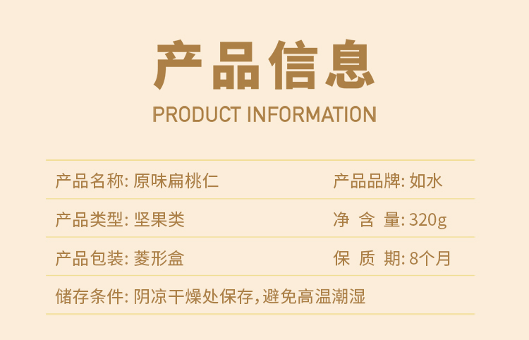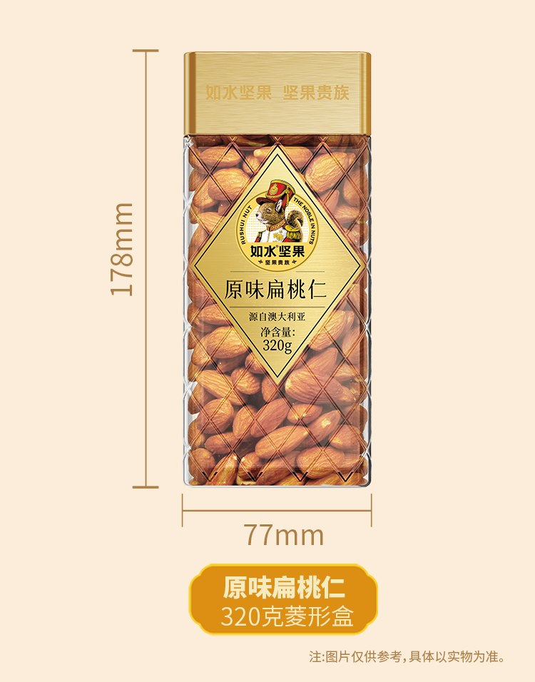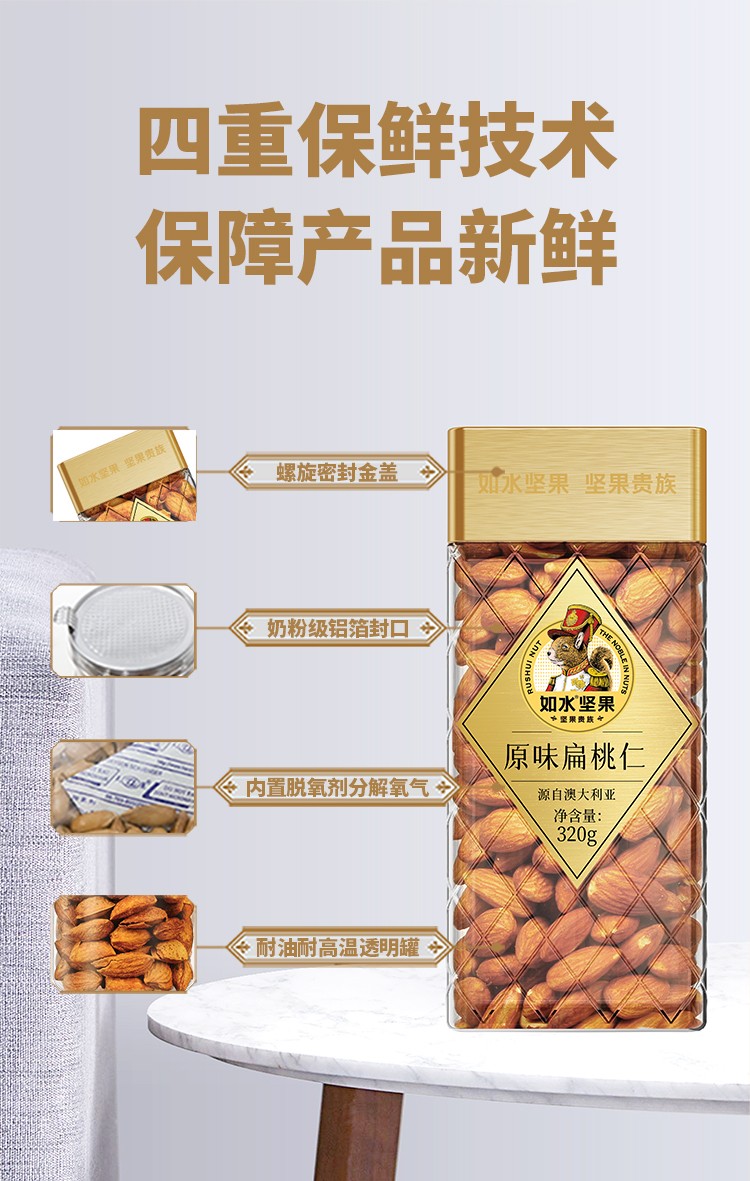 商品名称:(超运·禾贸)如水原味扁桃仁320g 坚果果干休闲零食