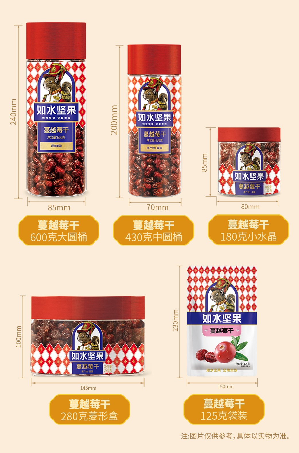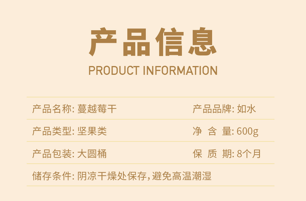 商品名称:(超运·禾贸)如水蔓越莓干600g 坚果果干休闲零食