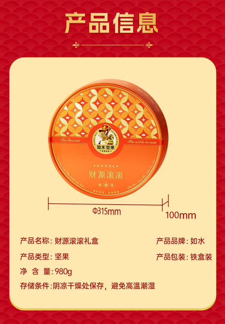 商品名称:(超运·禾贸)如水财源滚滚礼盒980g 春节高端严选干果礼盒 送人送礼送客户送长辈