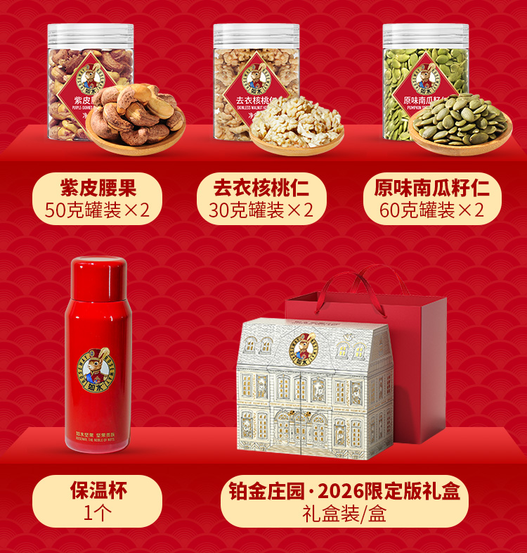 商品名称:(超运·禾贸)如水铂金庄园·2026限定版礼盒800g 春节高端严选干果礼盒 送人送礼送客户送长辈