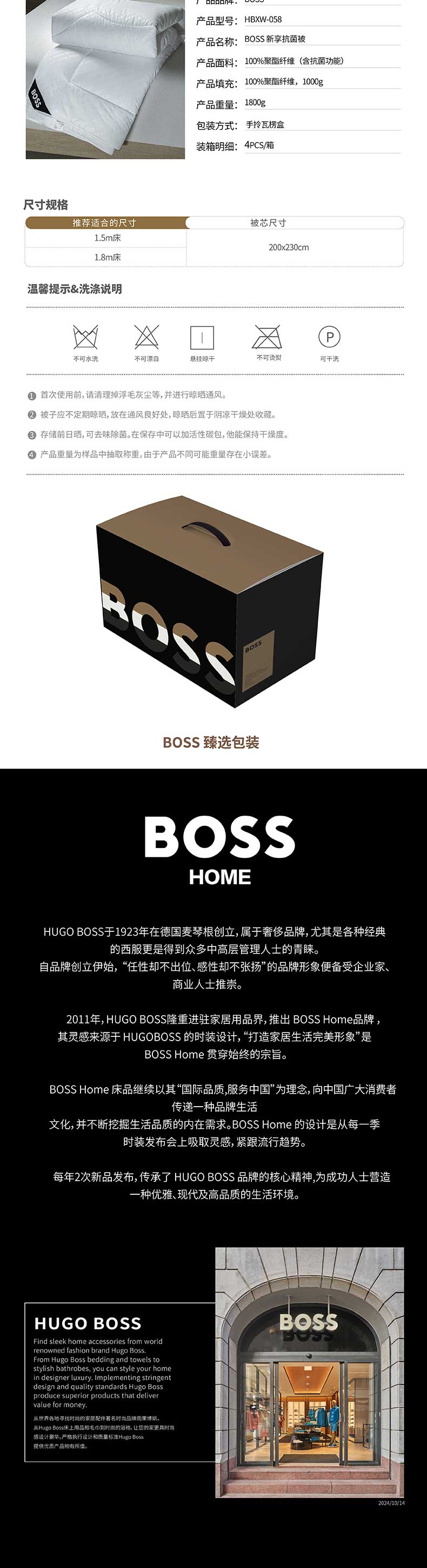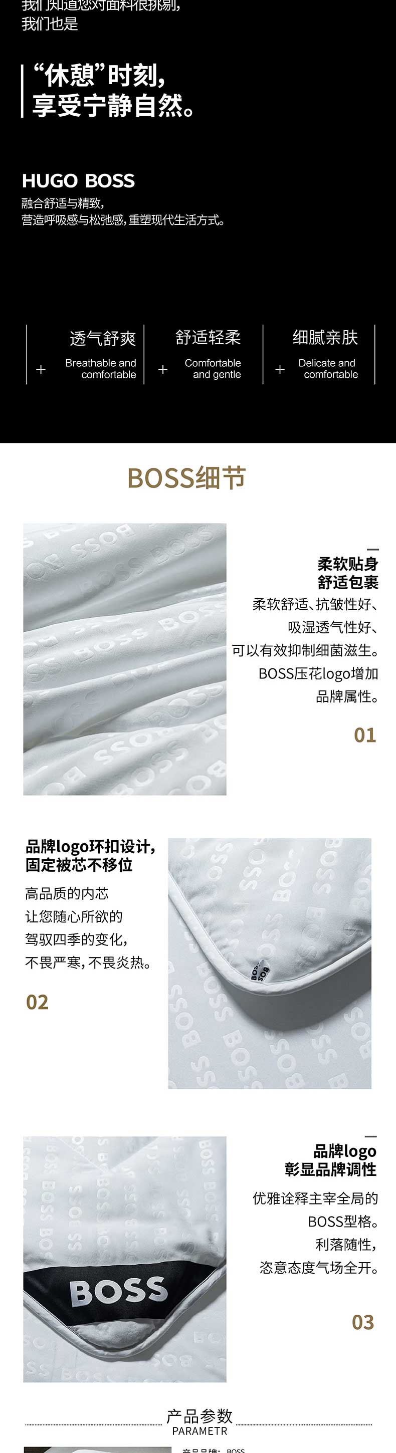 商品名称:(世星阳光)+ HUGO BOSS新享抗菌被 200x230cm 1000g 四季通用 抗菌 细腻柔软 轻盈保暖