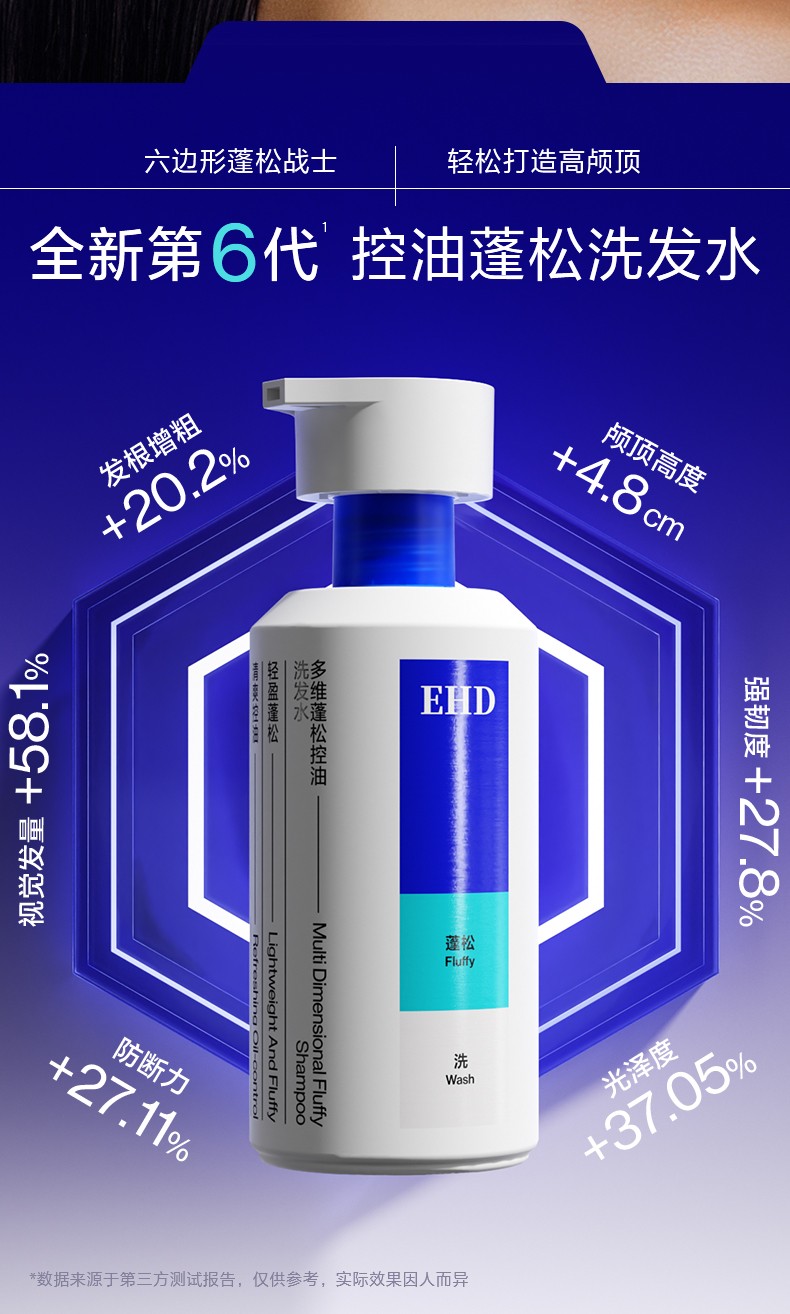 商品名称:(超运·禾贸)EHD多维蓬松控油洗发水500ml(新包装) 去油屑清爽留香氛轻盈不干涩男女洗发露