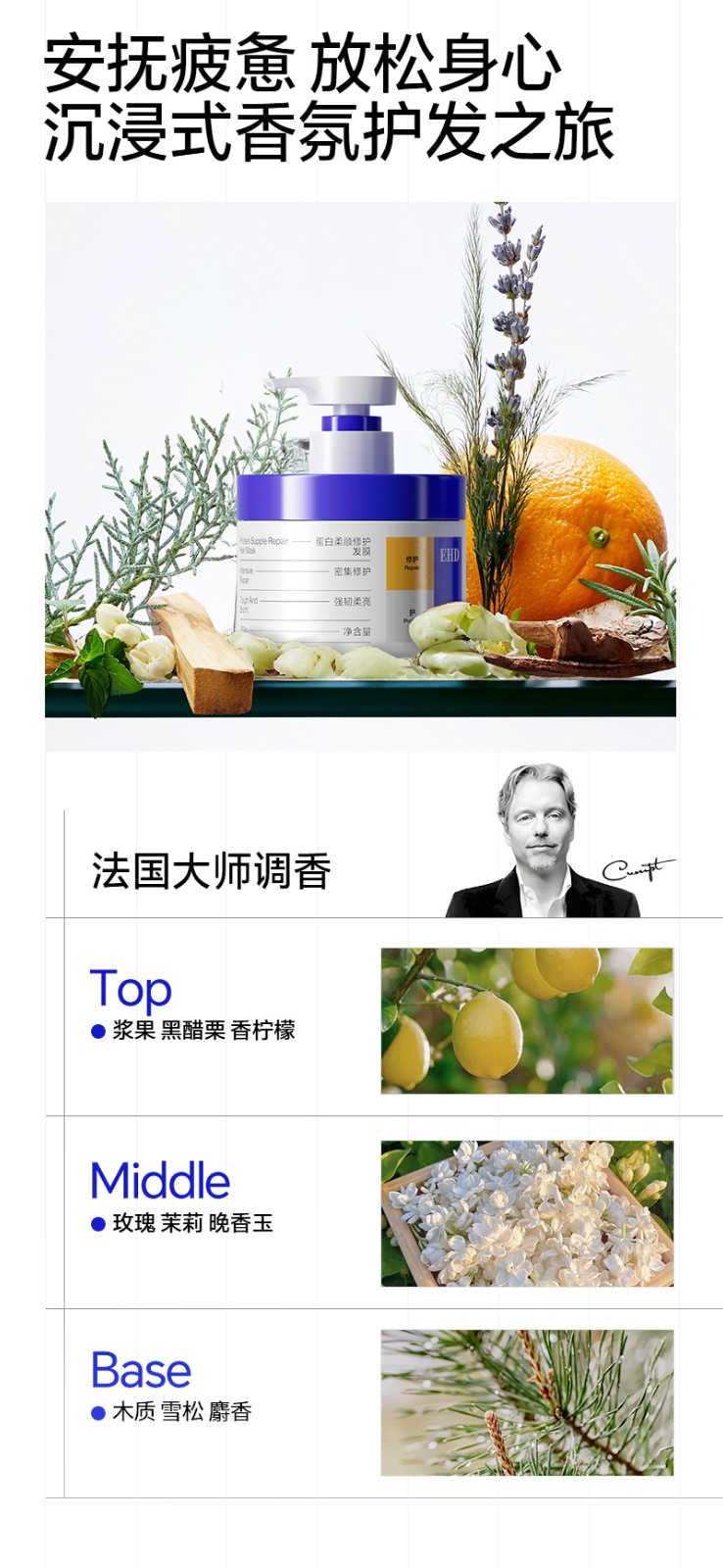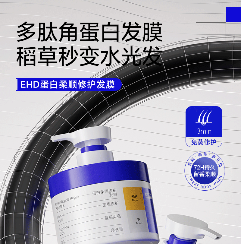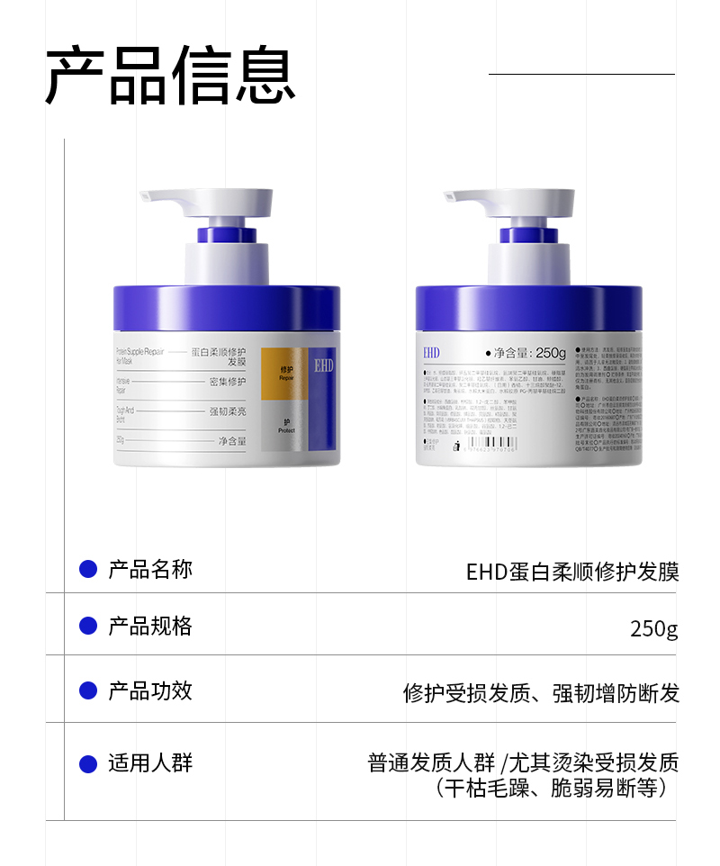 商品名称:(超运·禾贸)EHD蛋白柔顺修护发膜250g(新包装) 护发膜滋润干枯顺滑护发素养护染烫受损防毛躁