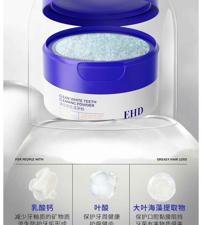 (超运·禾贸)EHD净白健齿洁牙粉50g(新包装) 清新口气美白去黄牙粉护龈薄荷清香牙膏粉