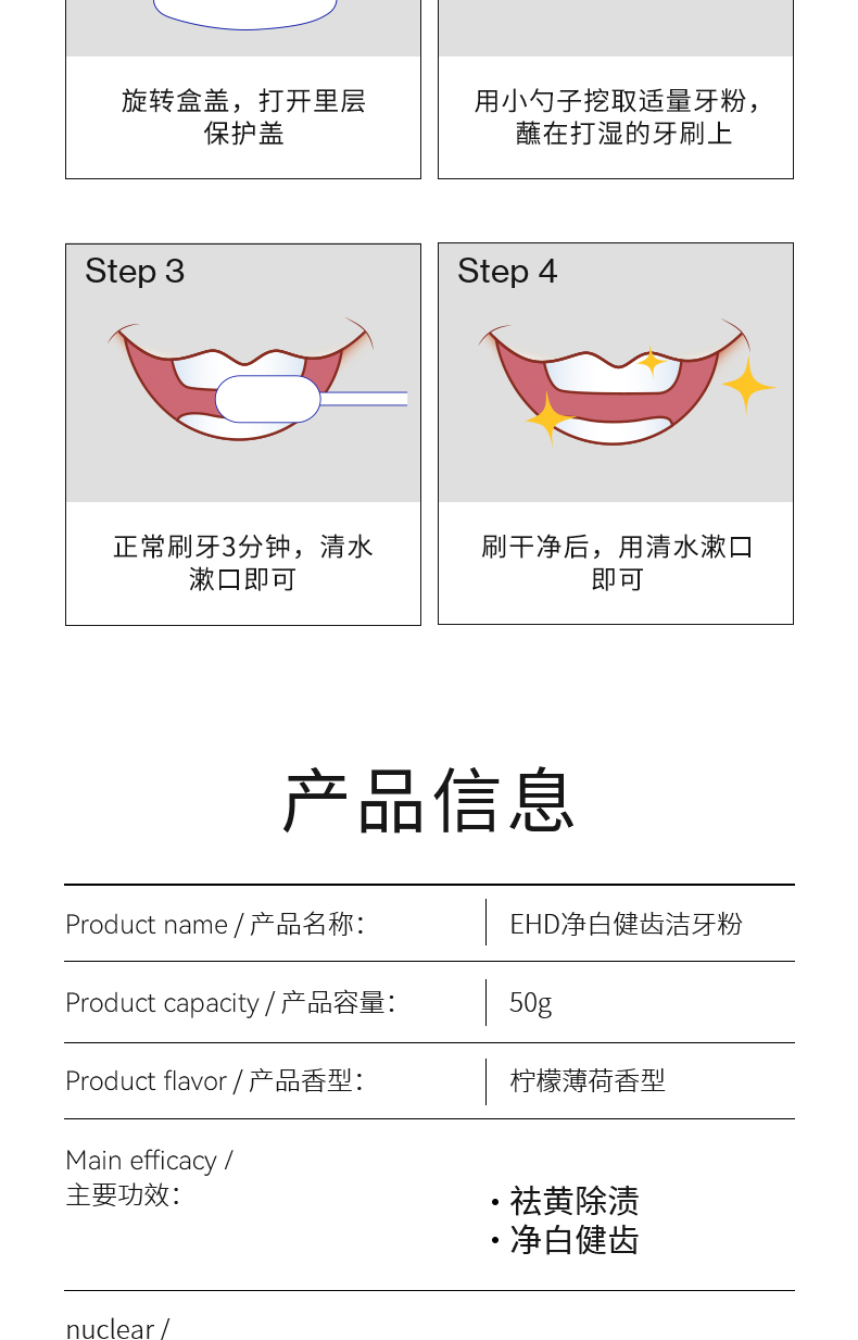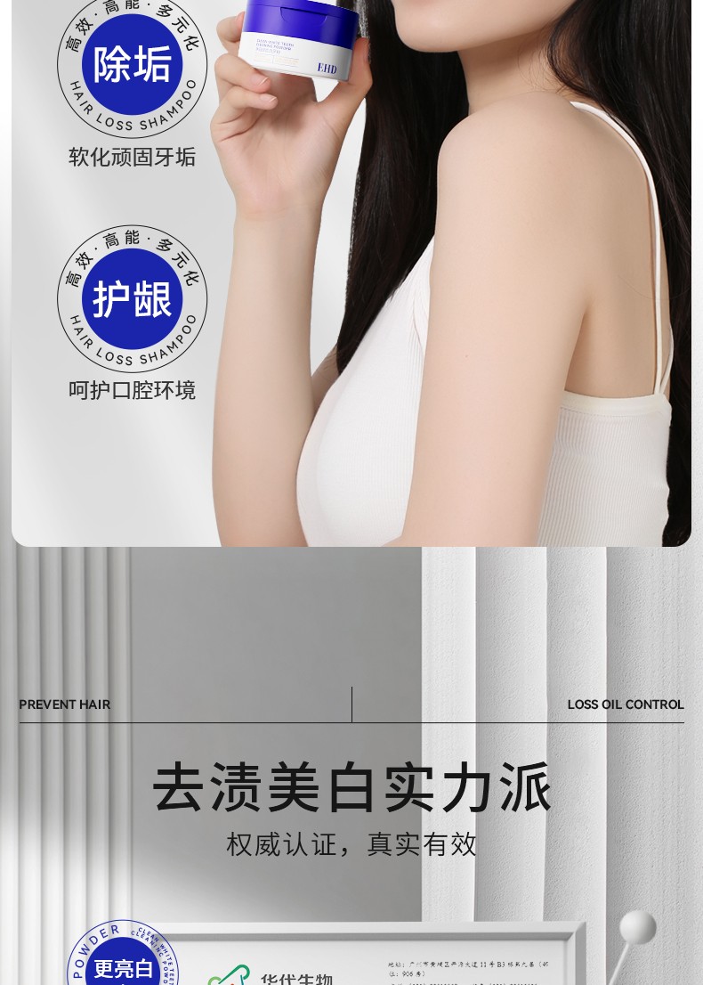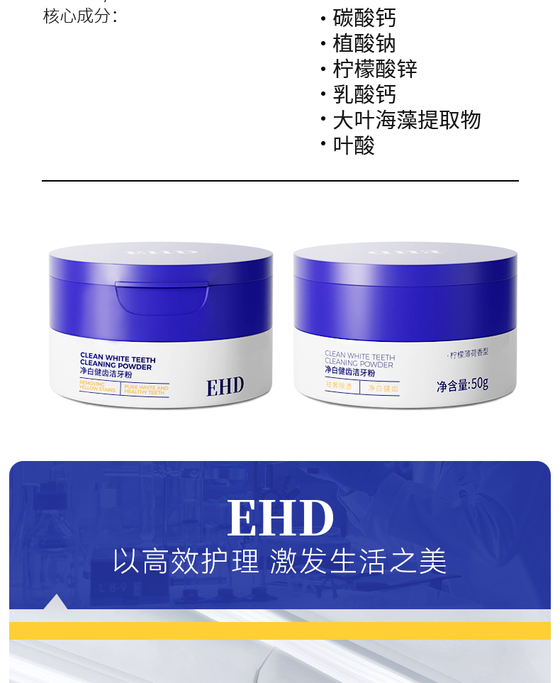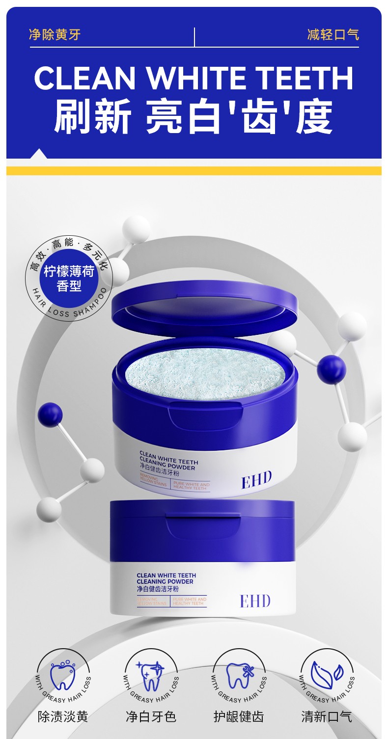 商品名称:(超运·禾贸)EHD净白健齿洁牙粉50g(新包装) 清新口气美白去黄牙粉护龈薄荷清香牙膏粉