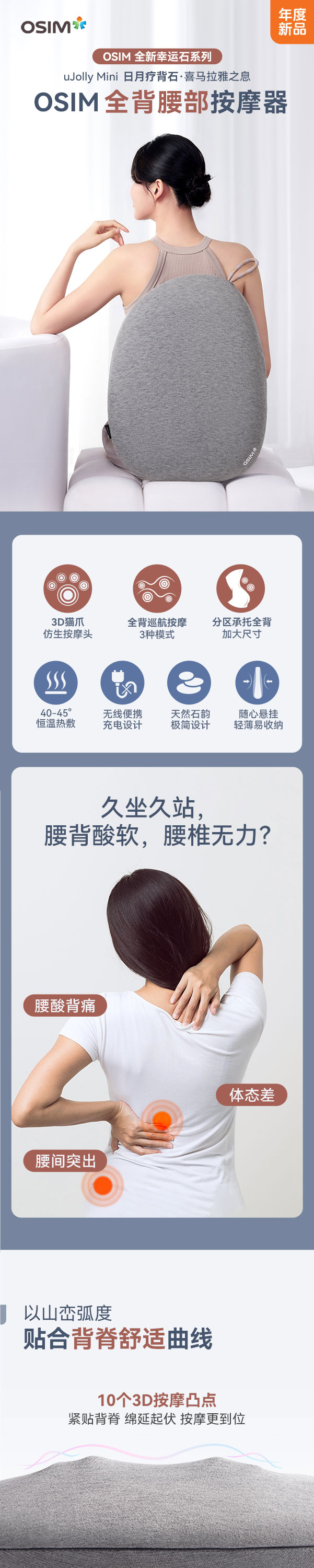 商品名称:(世星阳光)+傲胜(OSIM)全背按摩靠垫背部腰部自动揉捏0S-2256 uJolly Mini 傲胜幸运石-全背腰部按摩器
