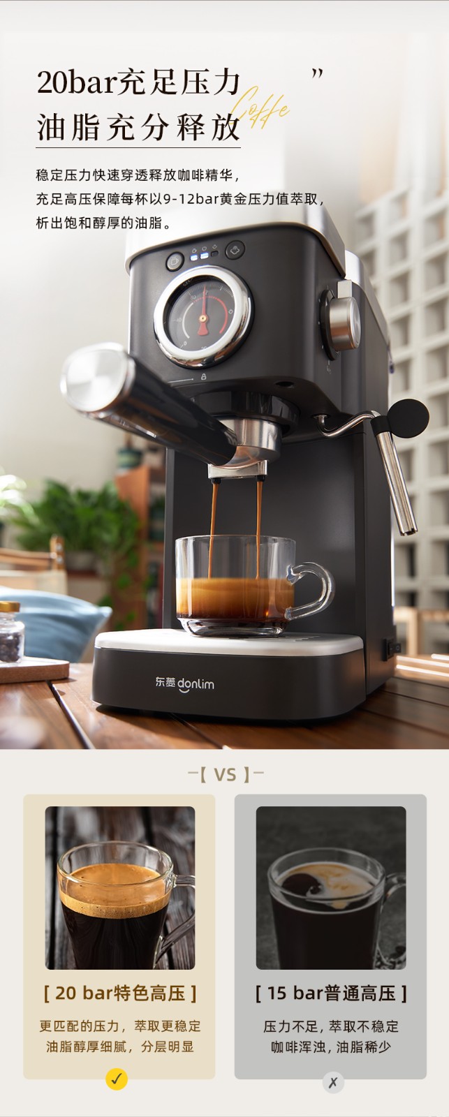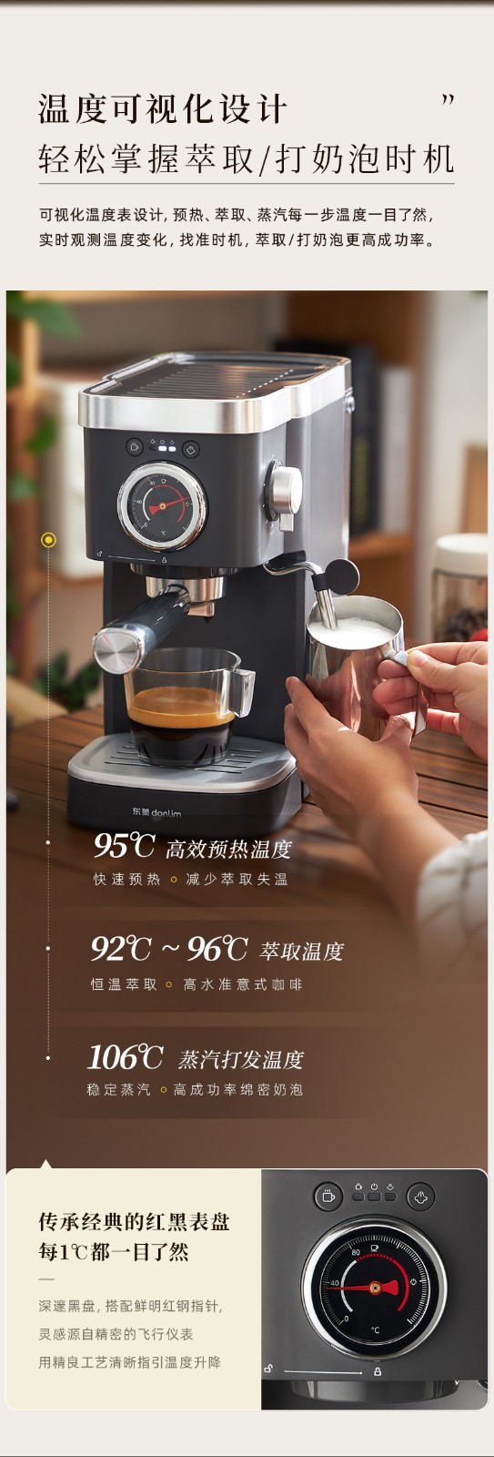 (世星阳光)+东菱(Donlim)咖啡机DL-6400 高压萃取蒸汽打奶泡20bar 半全自动意式浓缩
