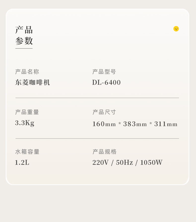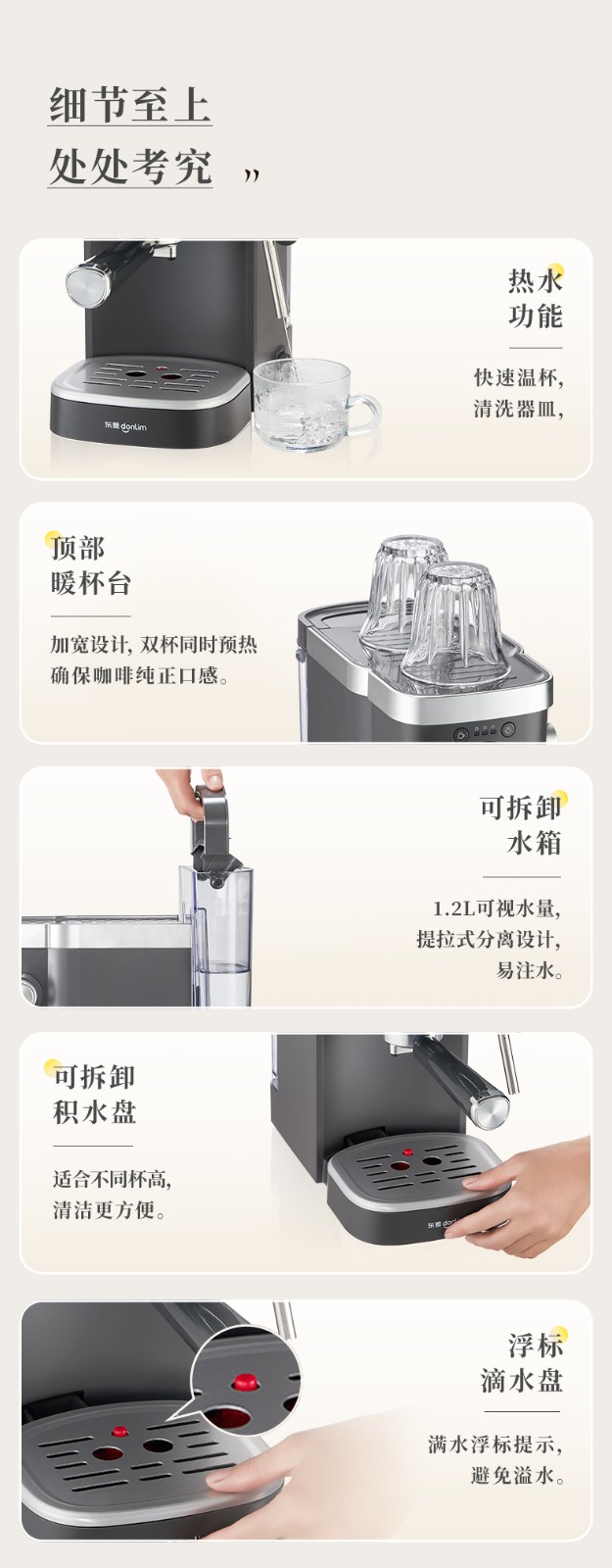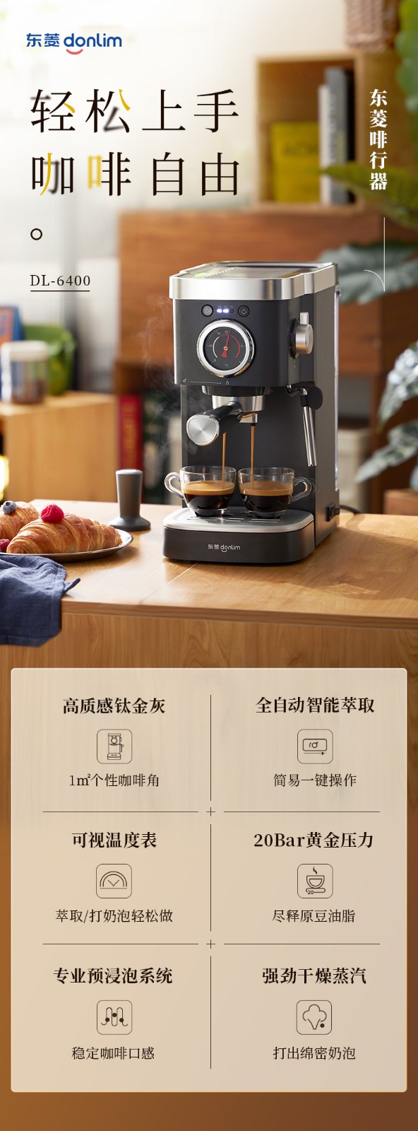 商品名称:(世星阳光)+东菱(Donlim)咖啡机DL-6400 高压萃取蒸汽打奶泡20bar 半全自动意式浓缩