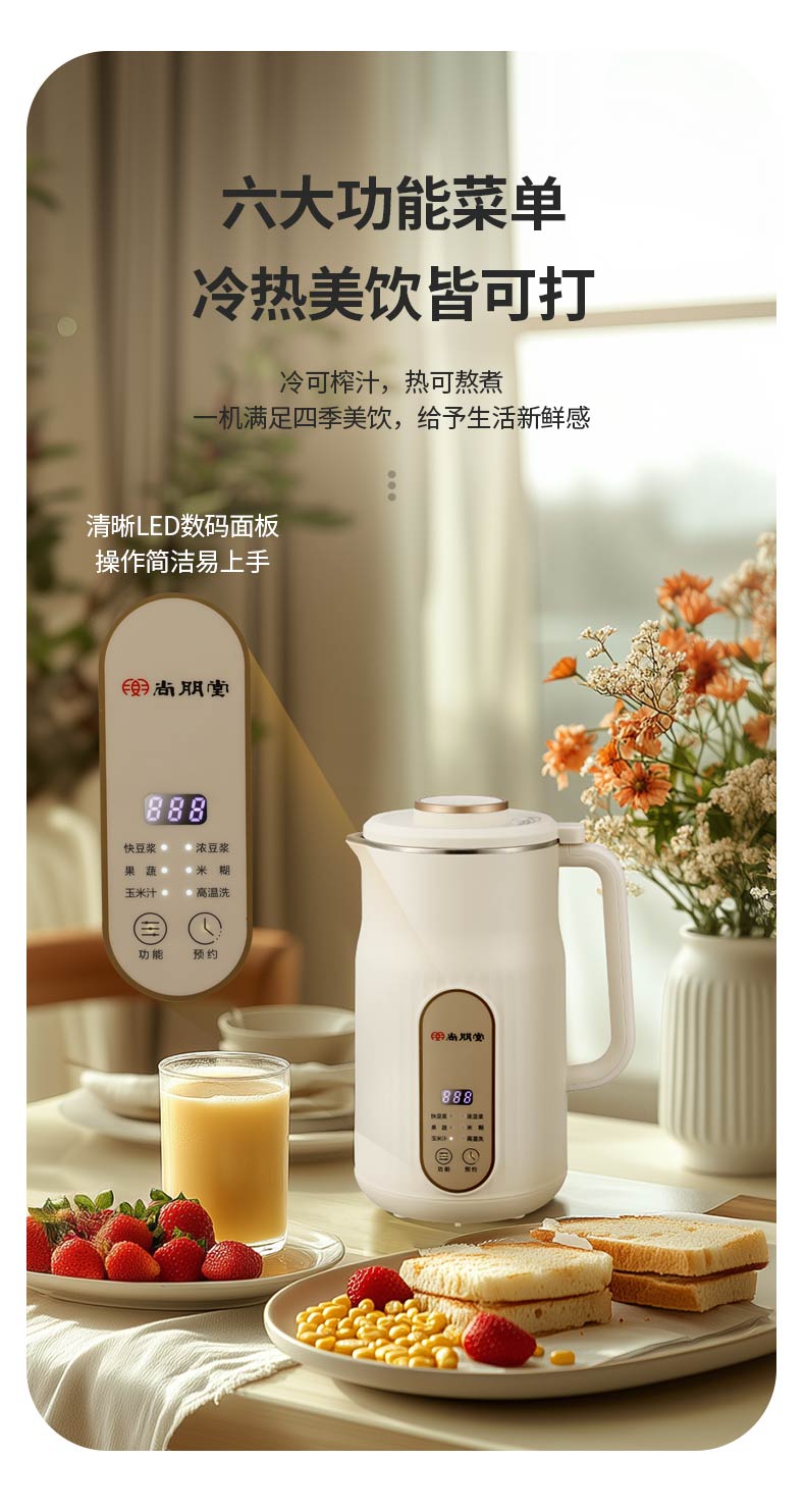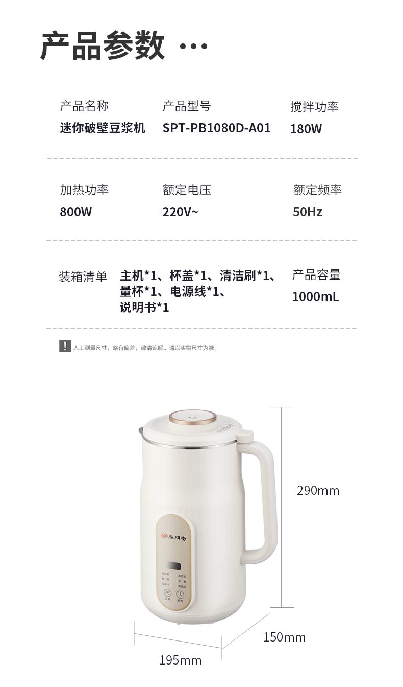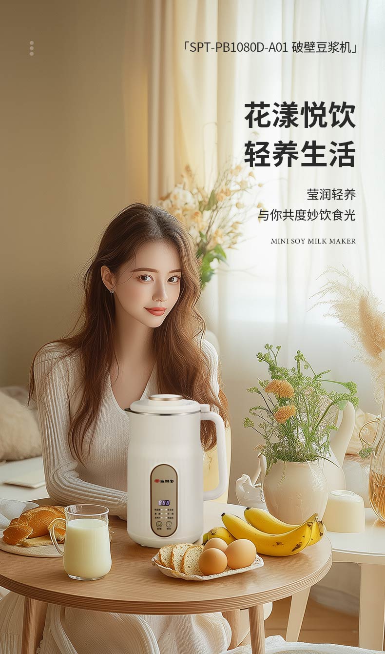 商品名称:(世星阳光)+尚朋堂 迷你破壁豆浆机SPT-PB1080D-A01 破壁豆浆机果汁料理多功能全自动辅食免洗豆浆机