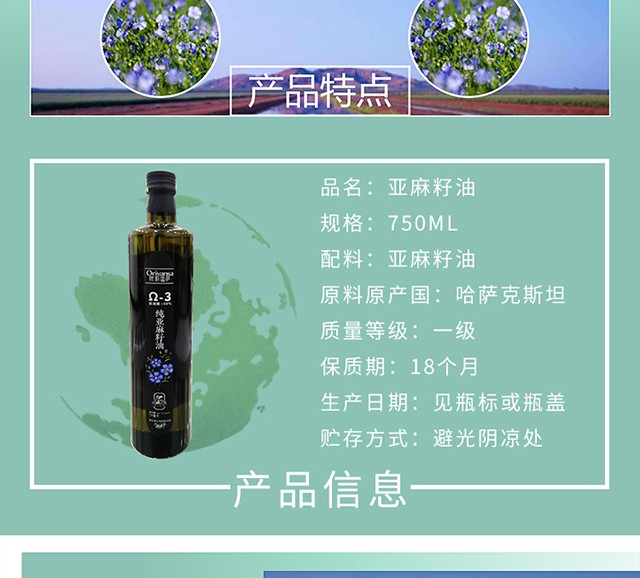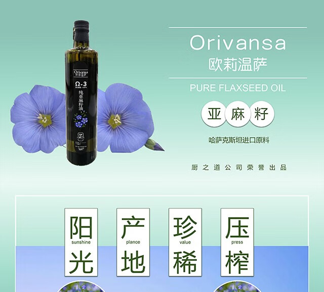 商品名称:(巨邦佑)BJ+厨道 欧莉温萨纯亚麻籽油750ml*2 精选优质原料营养健康美味食用油