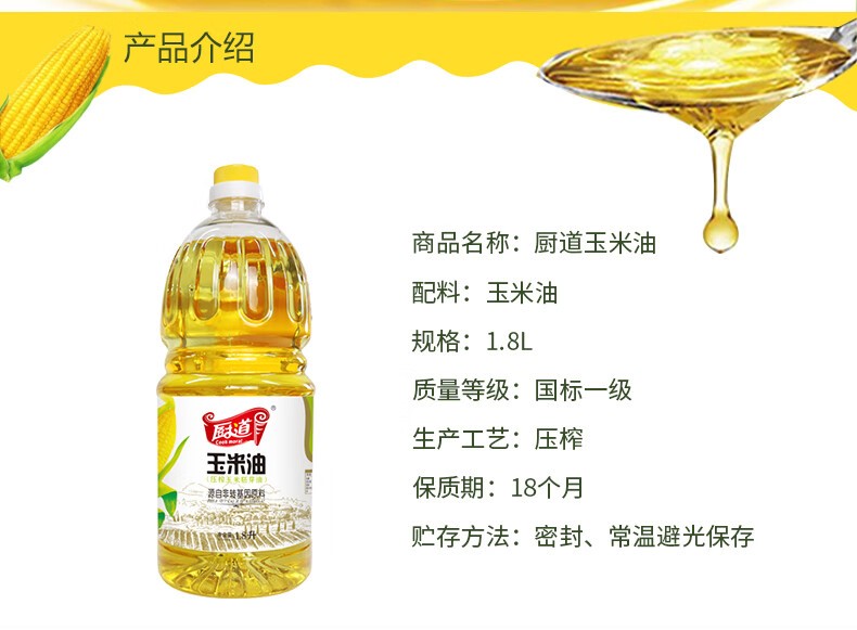 商品名称:(巨邦佑)BJ+厨道 纯玉米油 精选优质原料营养健康美味食用油