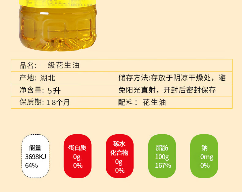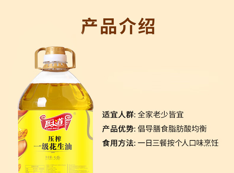 商品名称:(巨邦佑)BJ+厨道 一级花生油5L 精选优质原料营养健康美味食用油