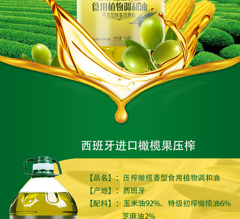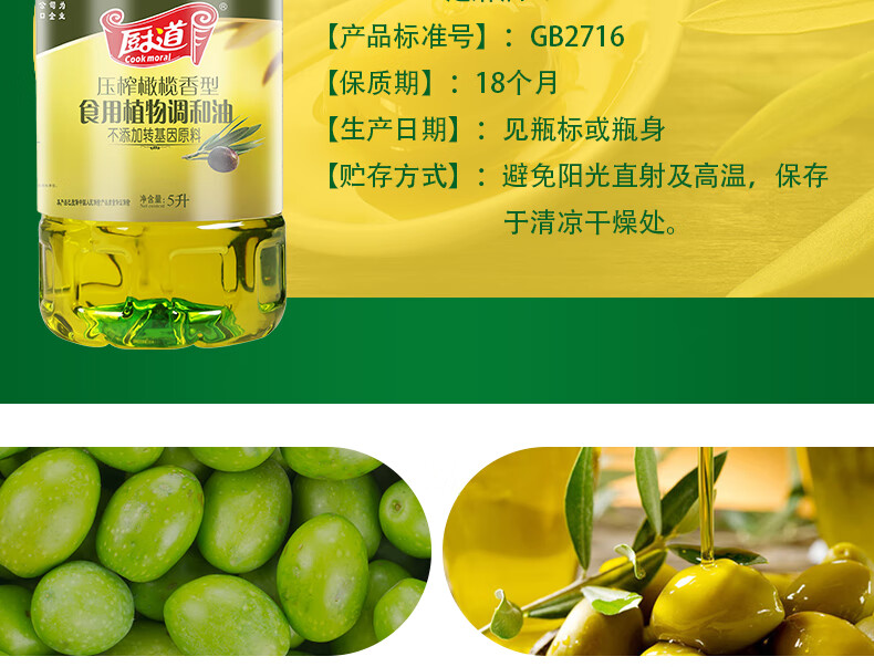 商品名称:(巨邦佑)BJ+厨道 压榨橄榄食用植物调和油5L 精选优质原料营养健康美味食用油