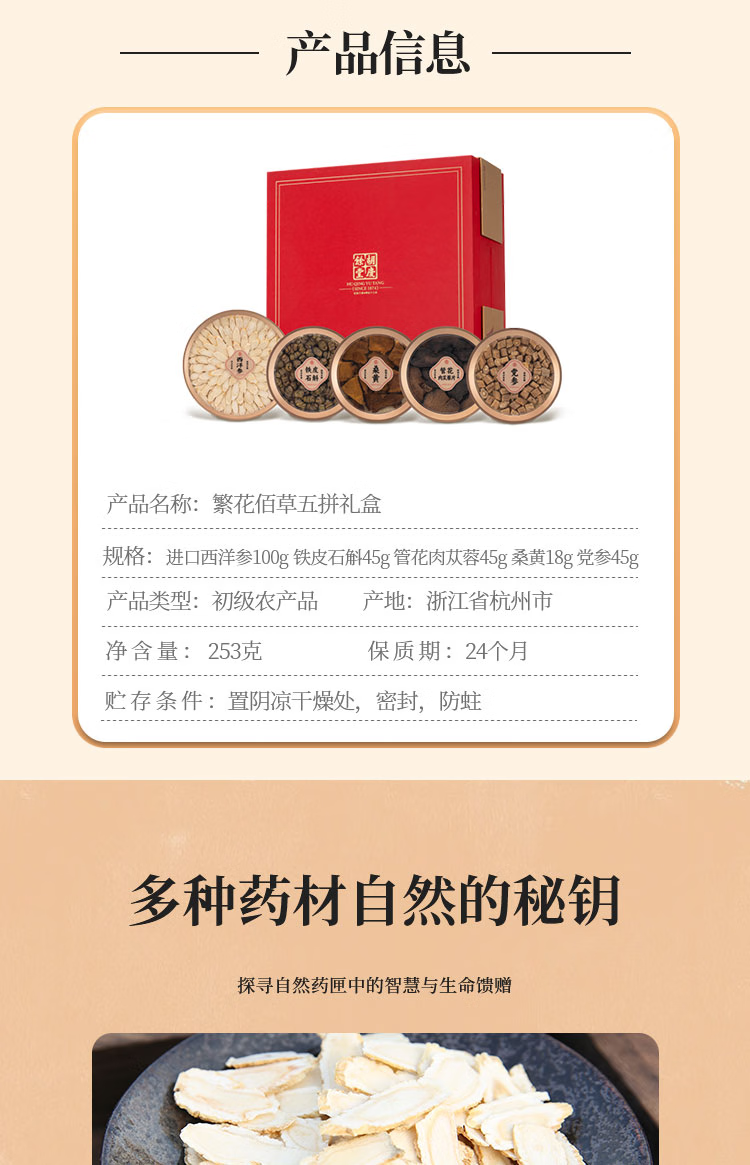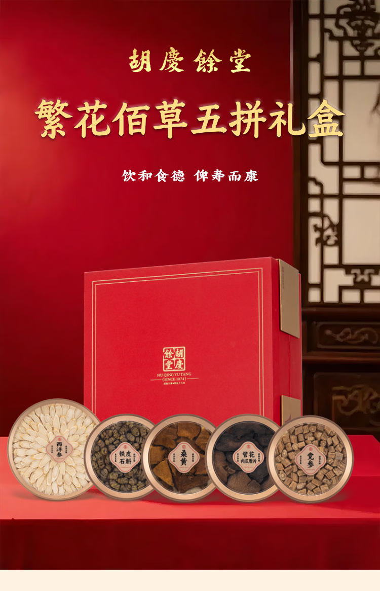 (巨邦佑)R+胡庆余堂繁花佰草五拼礼盒253g 实用高档礼盒套装 孝敬长辈 正品