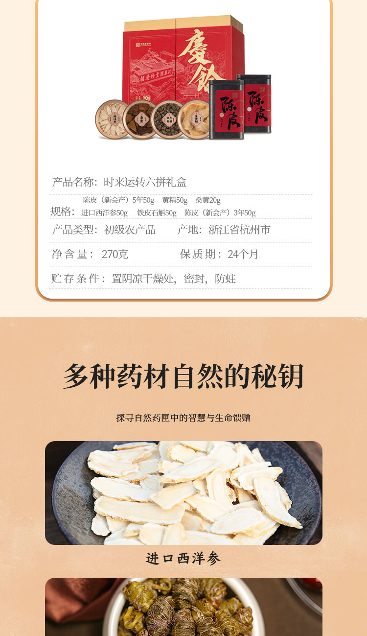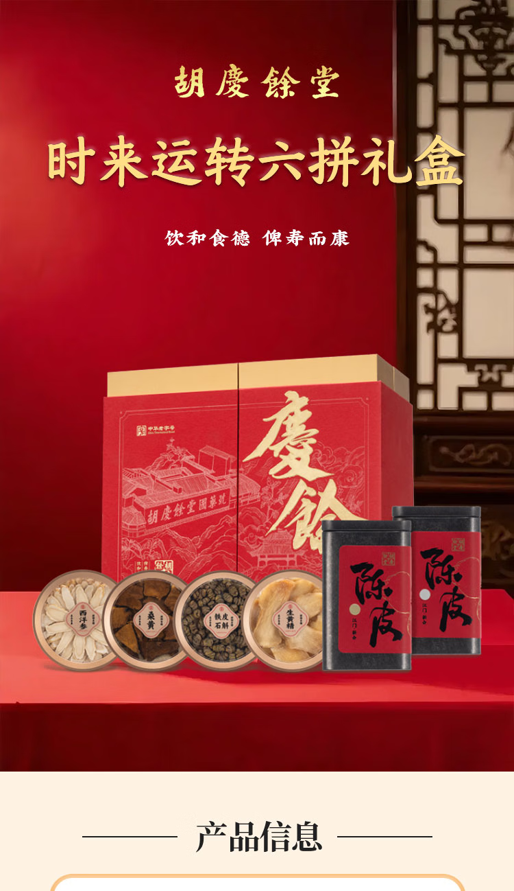 商品名称:(巨邦佑)R+胡庆余堂时来运转六拼礼盒270g 实用高档礼盒套装 孝敬长辈 正宗原装