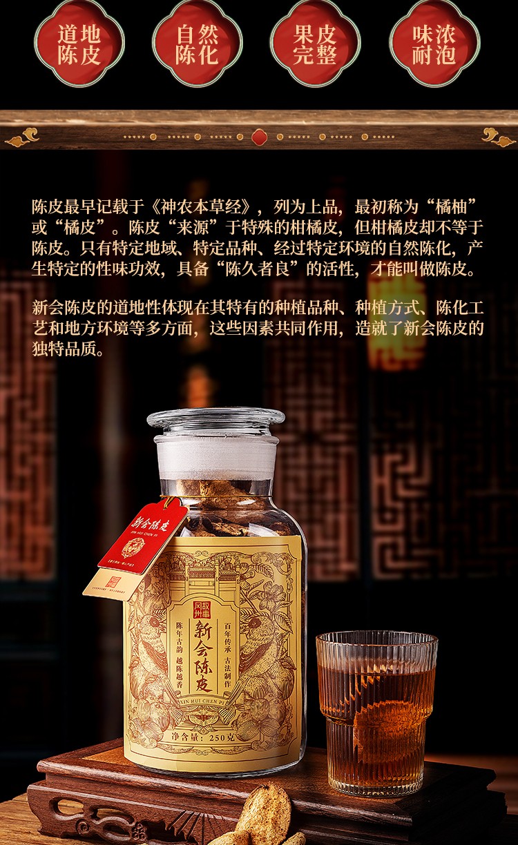商品名称:(巨邦佑)R+冈州故事12年陈皮250克养生茶礼盒 陈皮丝橘皮 桔子皮老陈皮 泡茶泡水中药材理气健脾