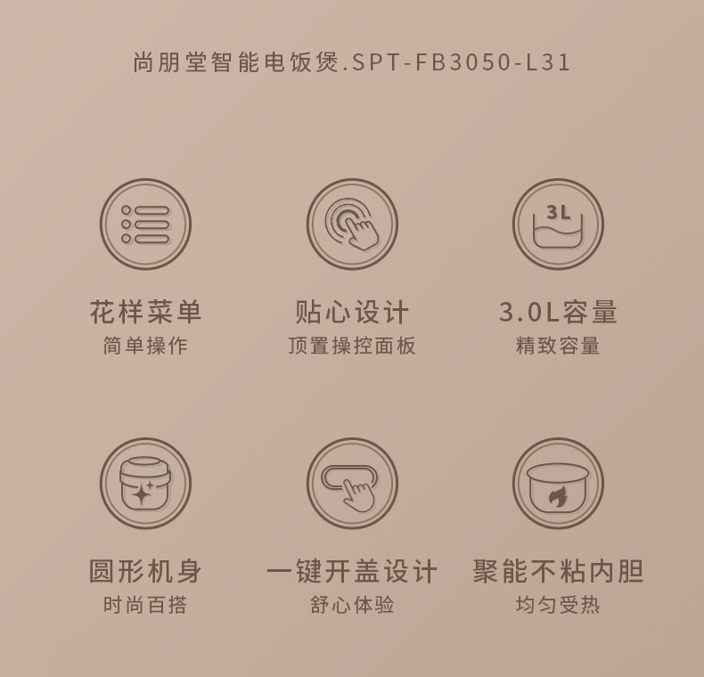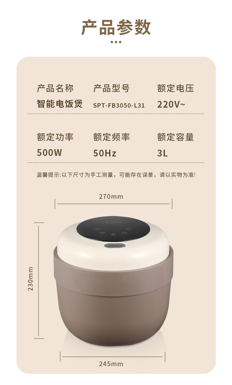 商品名称:(世星阳光)+尚朋堂 智能电饭煲SPT-FB3050-L31 3L家用汤粥智能保温触控电饭锅