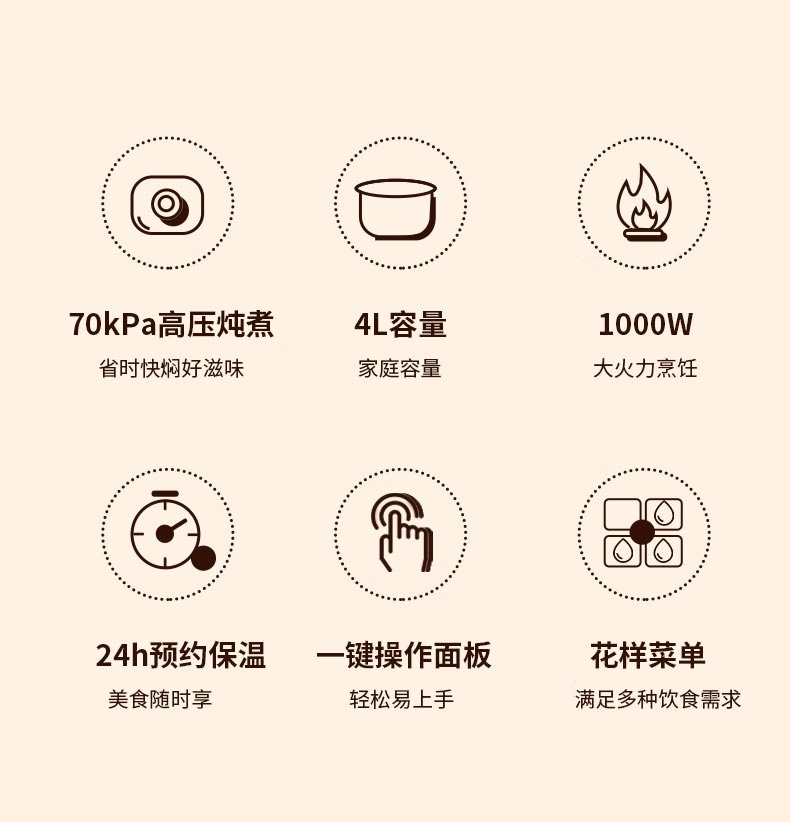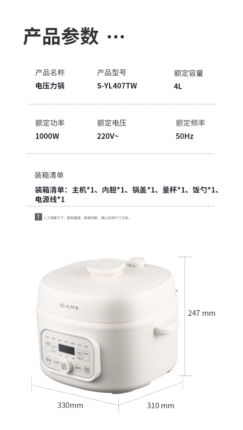 商品名称:(世星阳光)+尚朋堂 智能电压力锅 4L 家用多功能煲汤煮饭高压锅