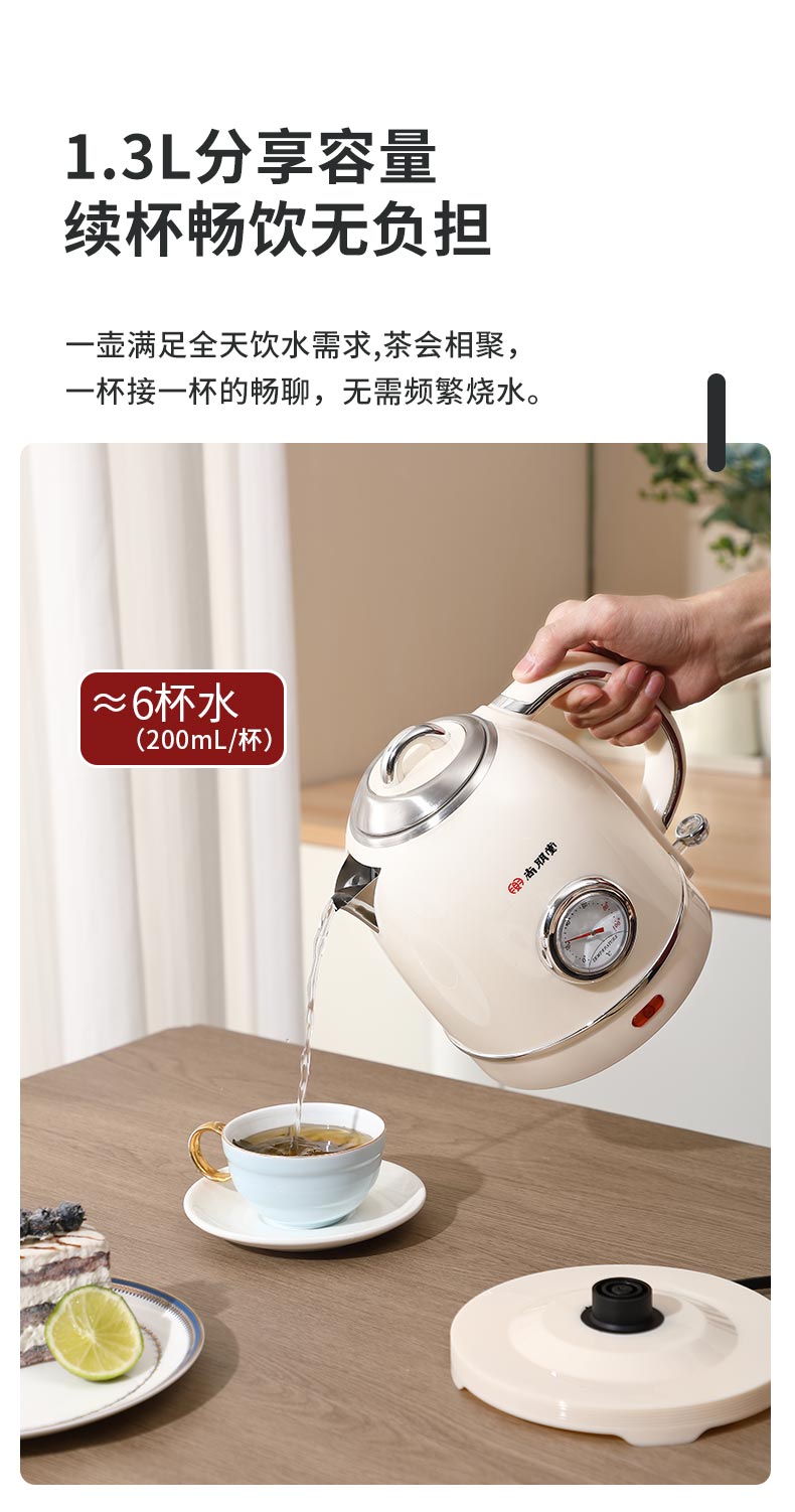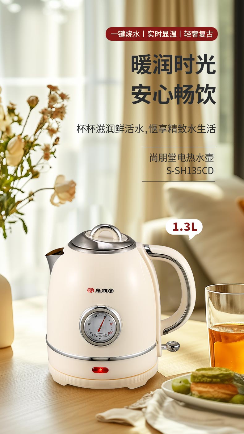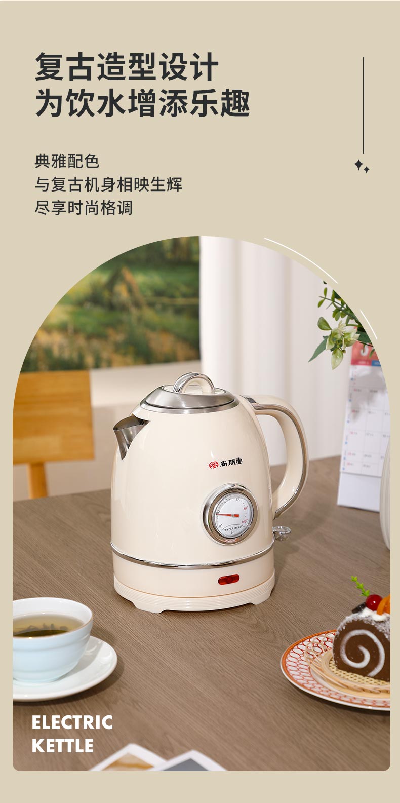 (世星阳光)+尚朋堂 电热水壶S-SH135CD 1.3L 复古305不锈钢内胆自动断电烧水壶