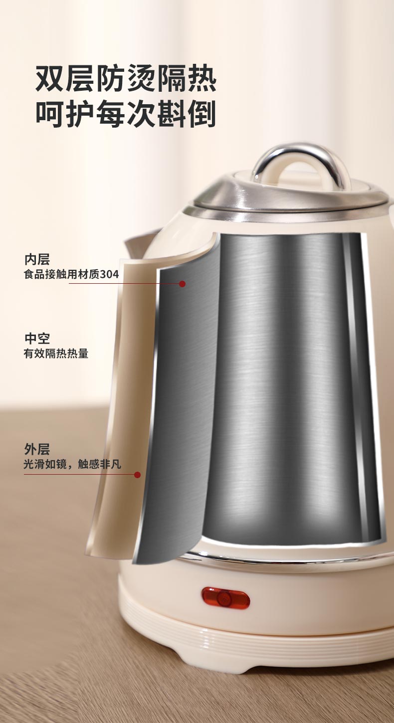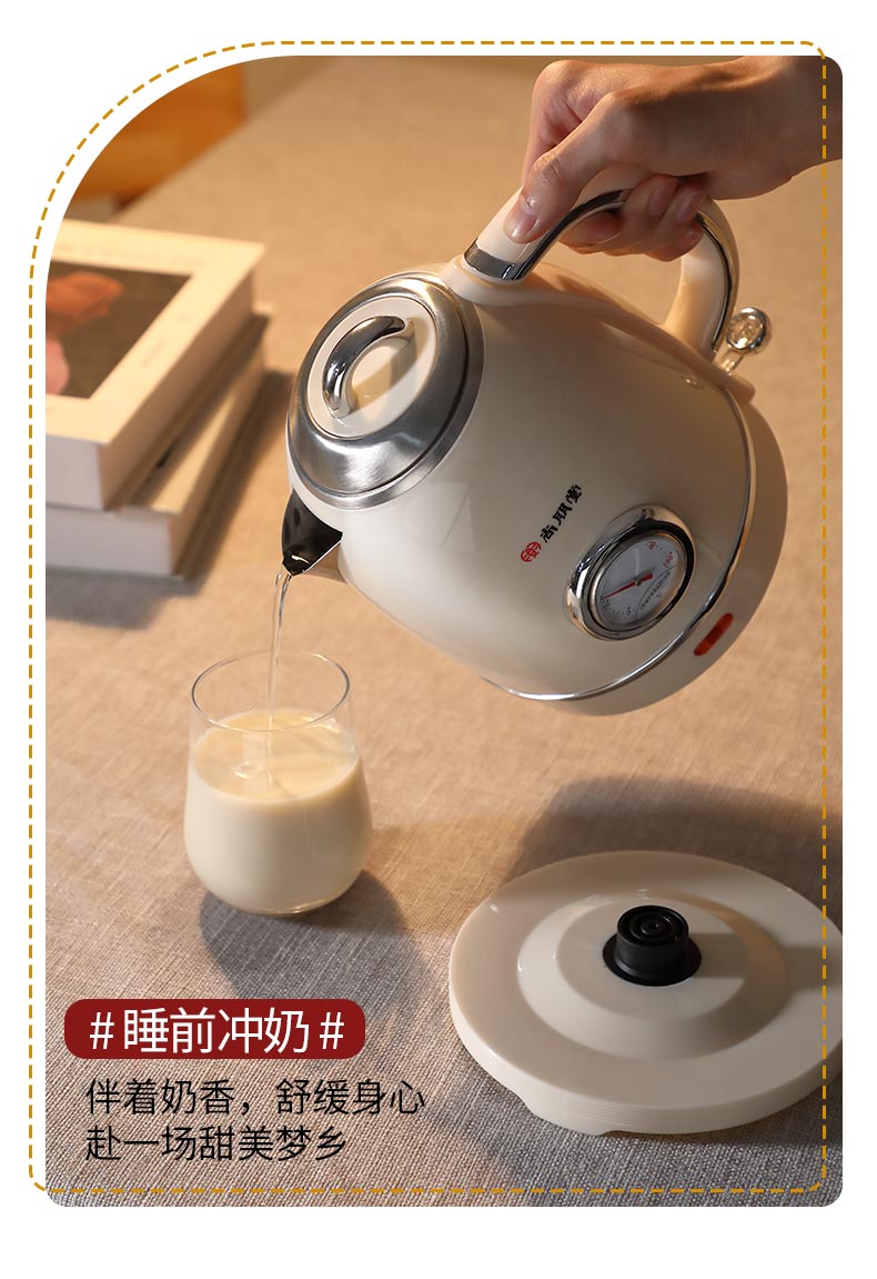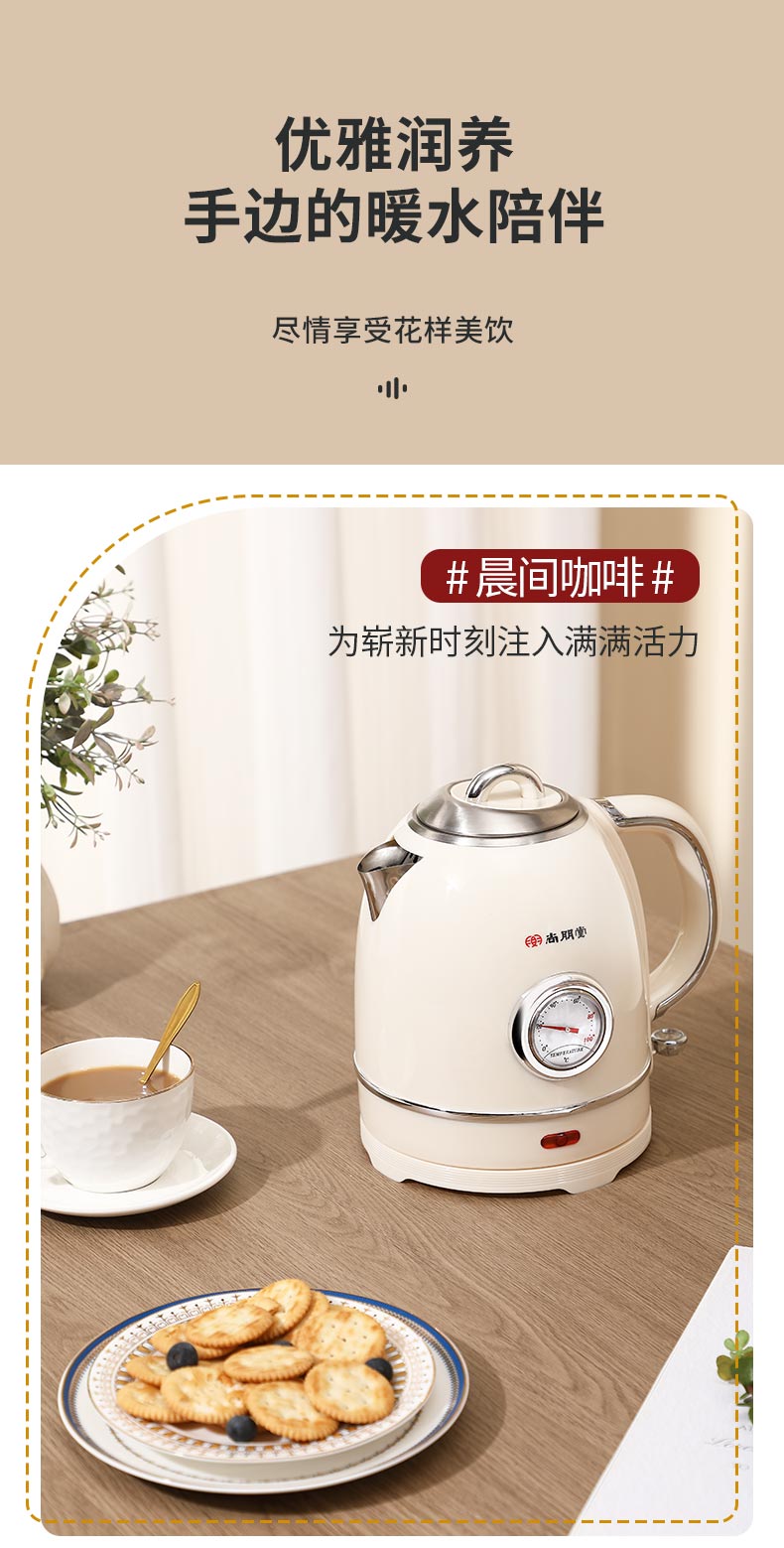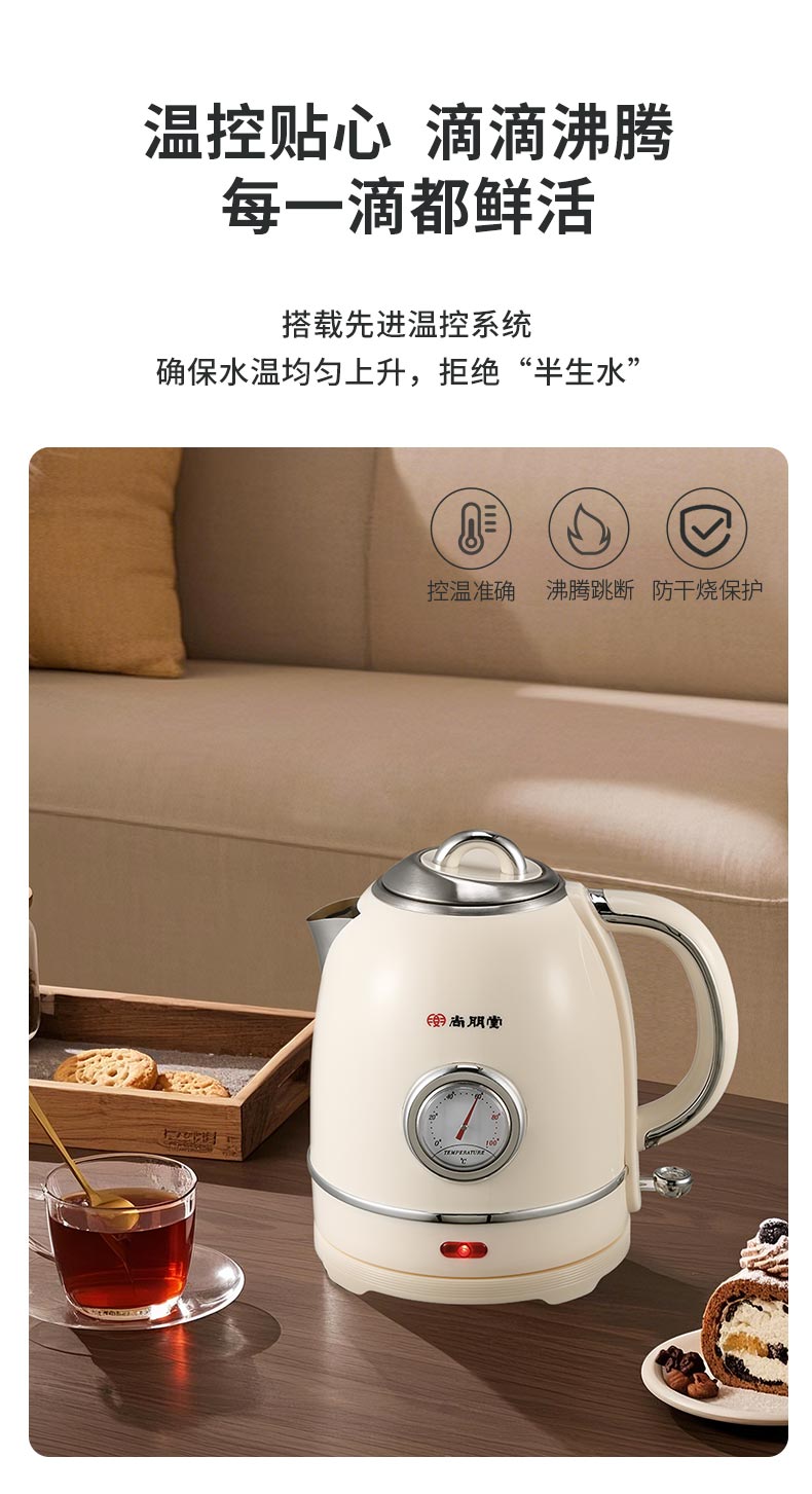 (世星阳光)+尚朋堂 电热水壶S-SH135CD 1.3L 复古305不锈钢内胆自动断电烧水壶