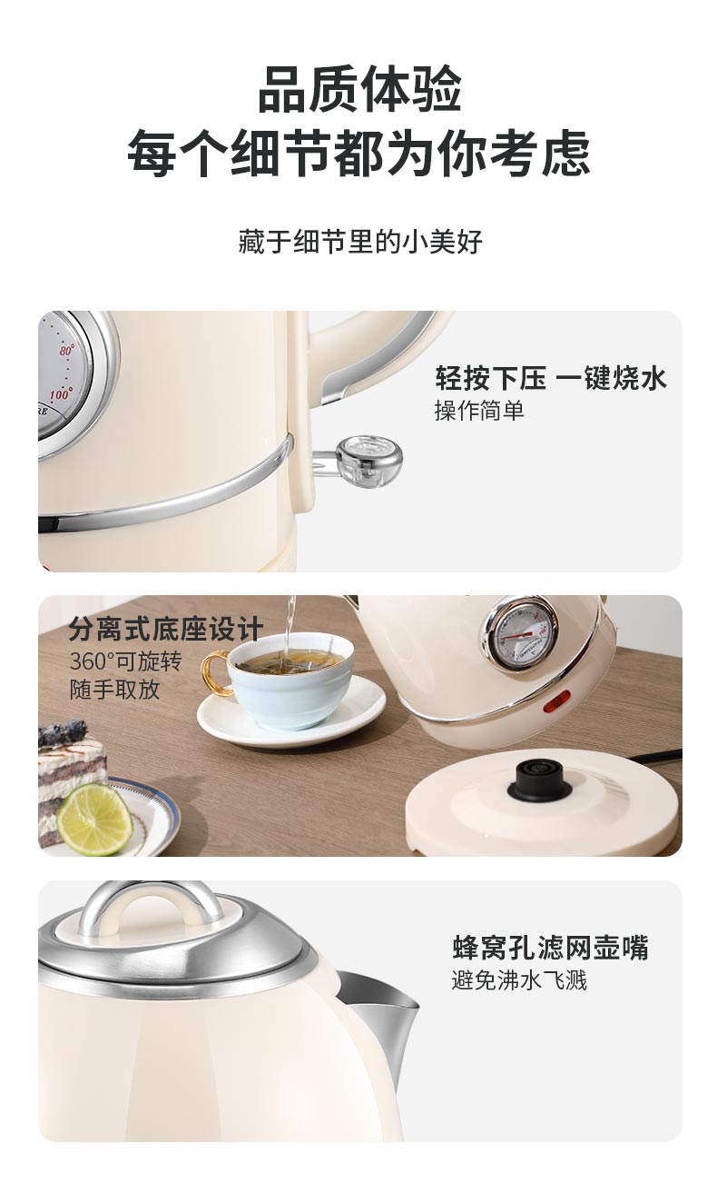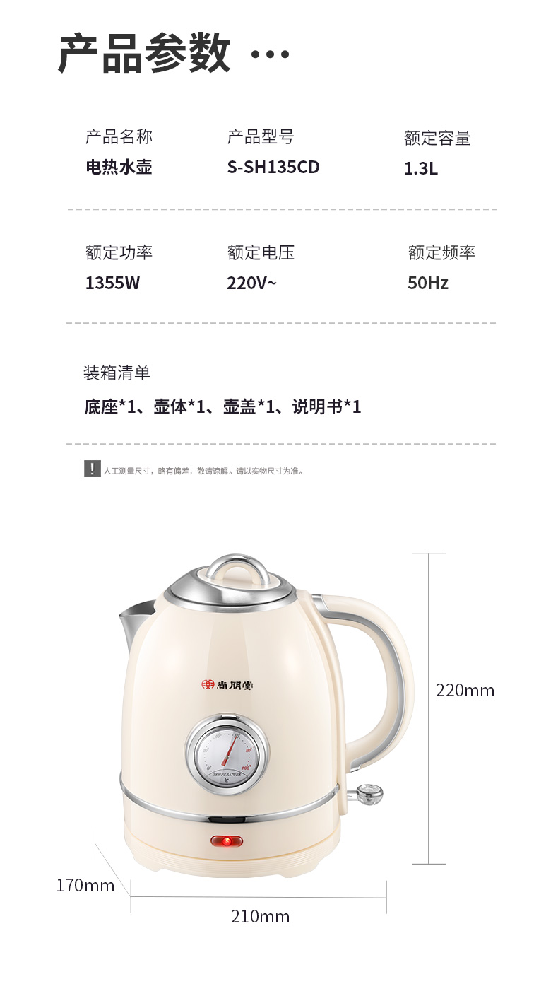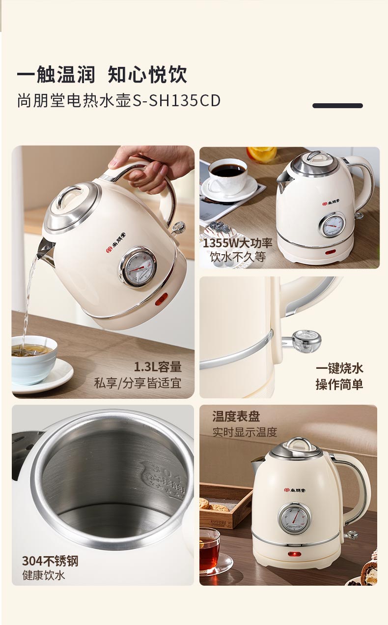 商品名称:(世星阳光)+尚朋堂 电热水壶S-SH135CD 1.3L 复古305不锈钢内胆自动断电烧水壶