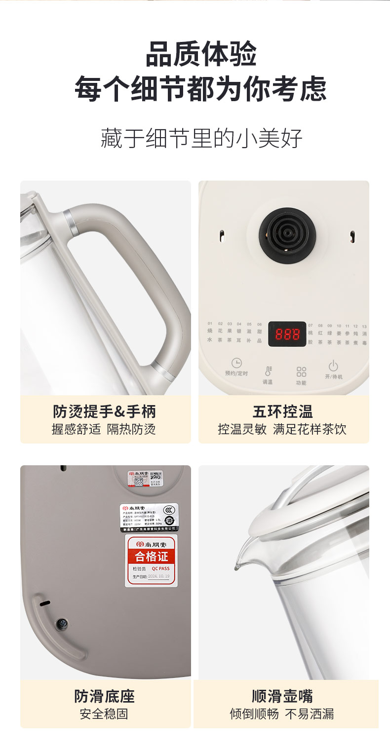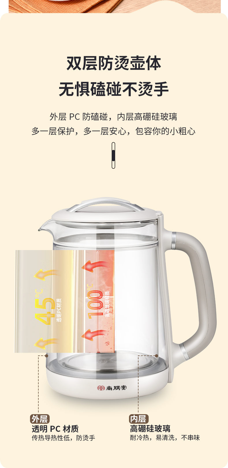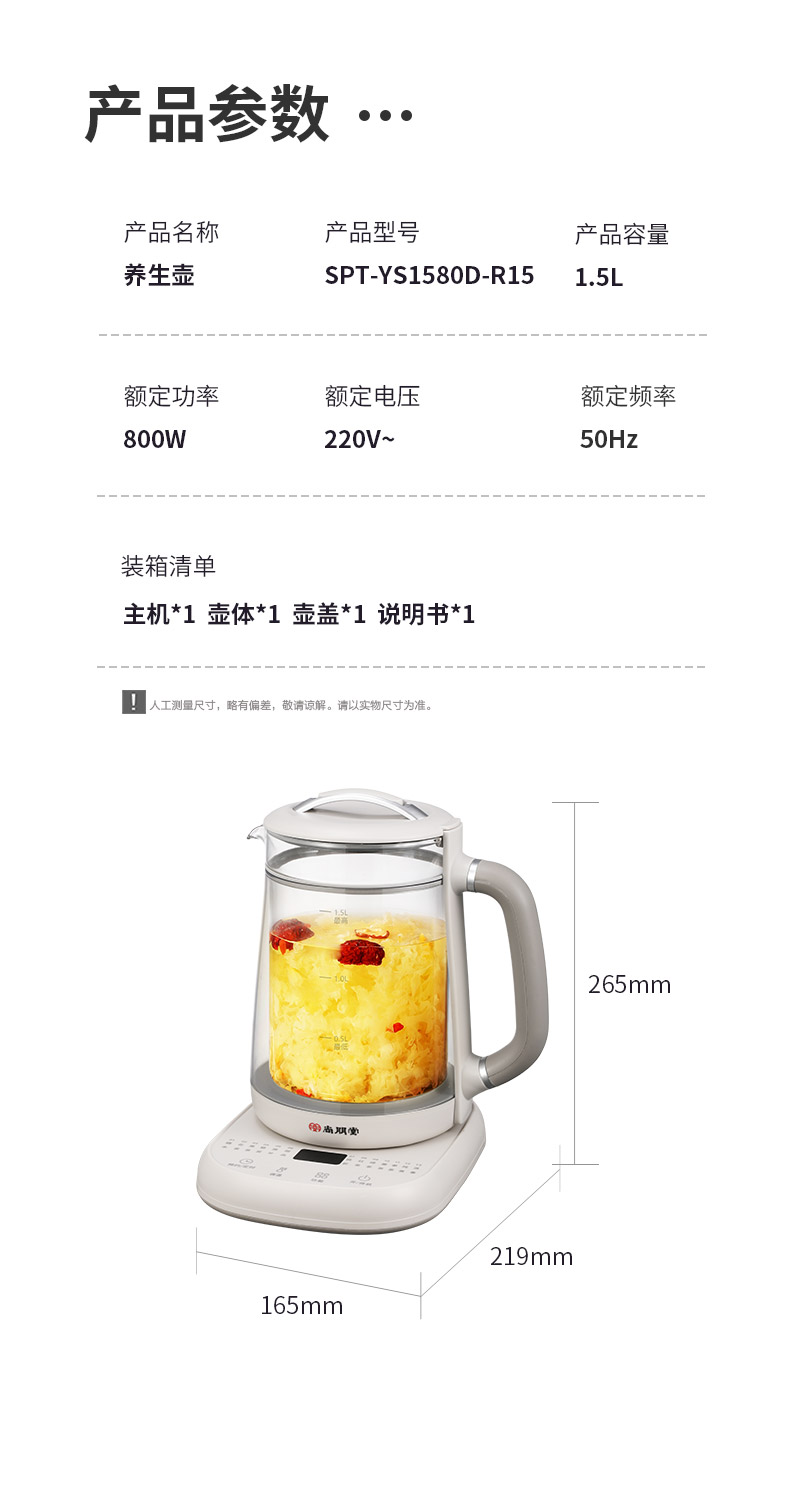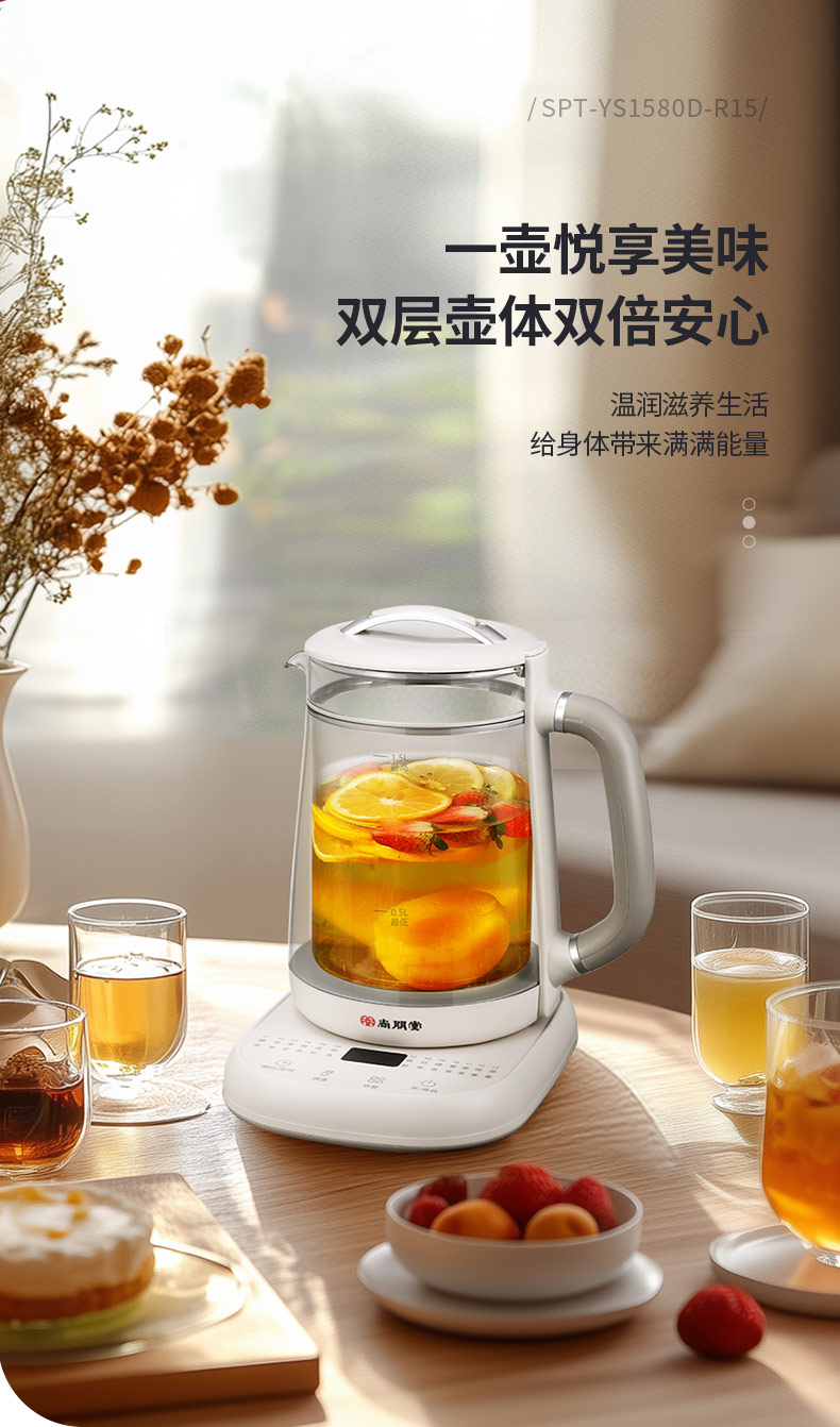 (世星阳光)+尚朋堂 液体加热器(养生壶)SPT-YS1580D-R15 1.5L多功能家用办公室煮茶智能恒温烧水壶