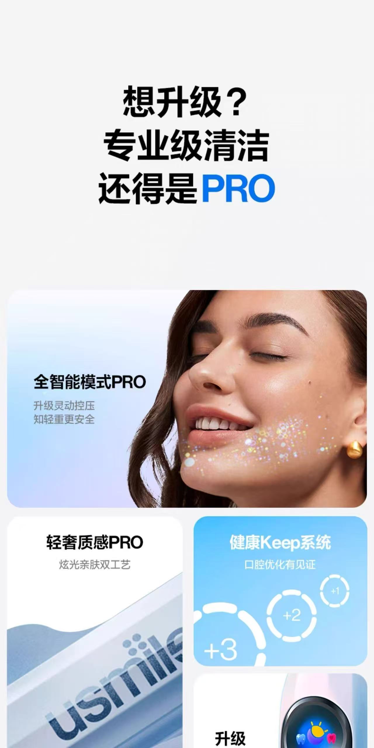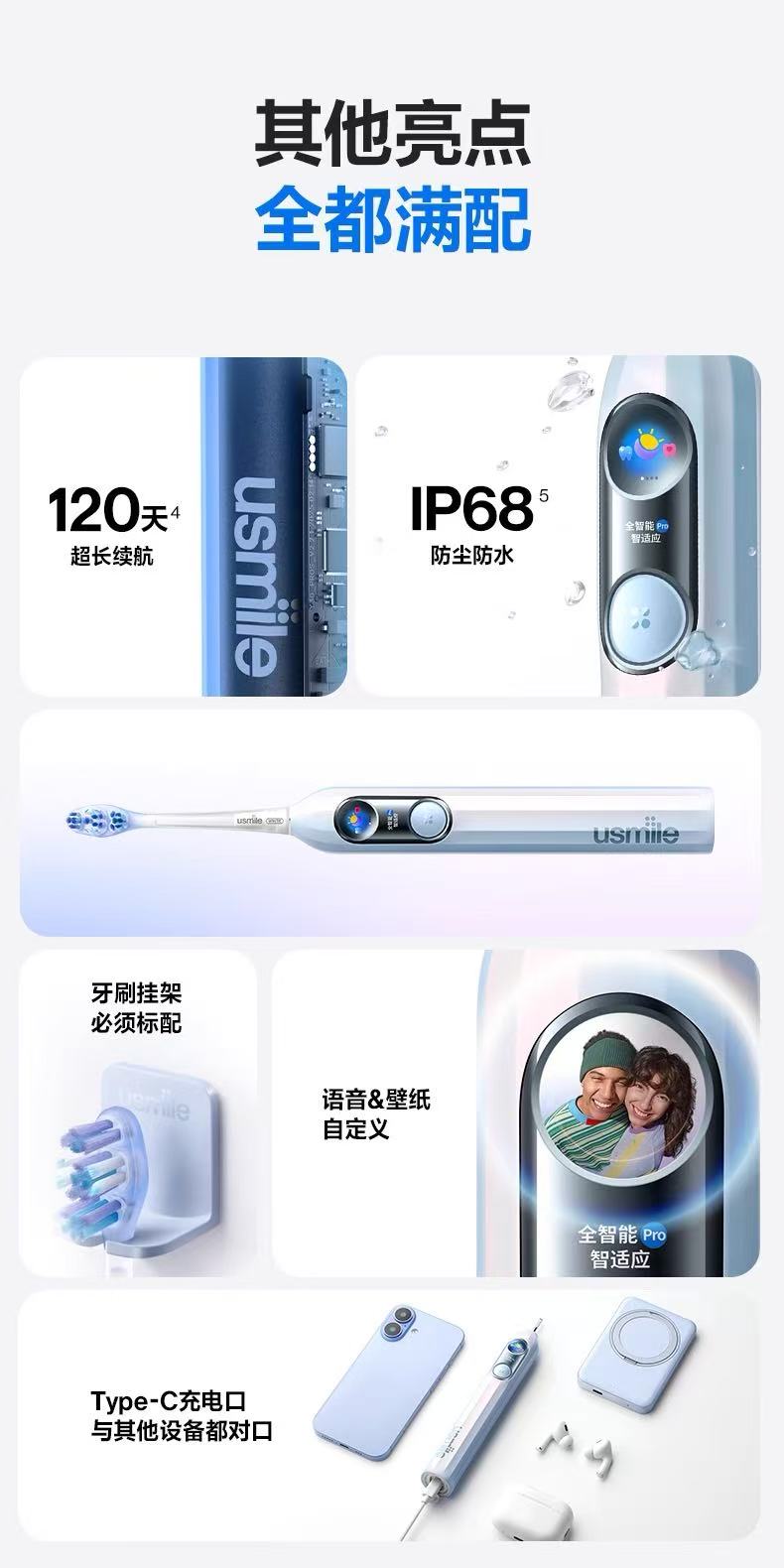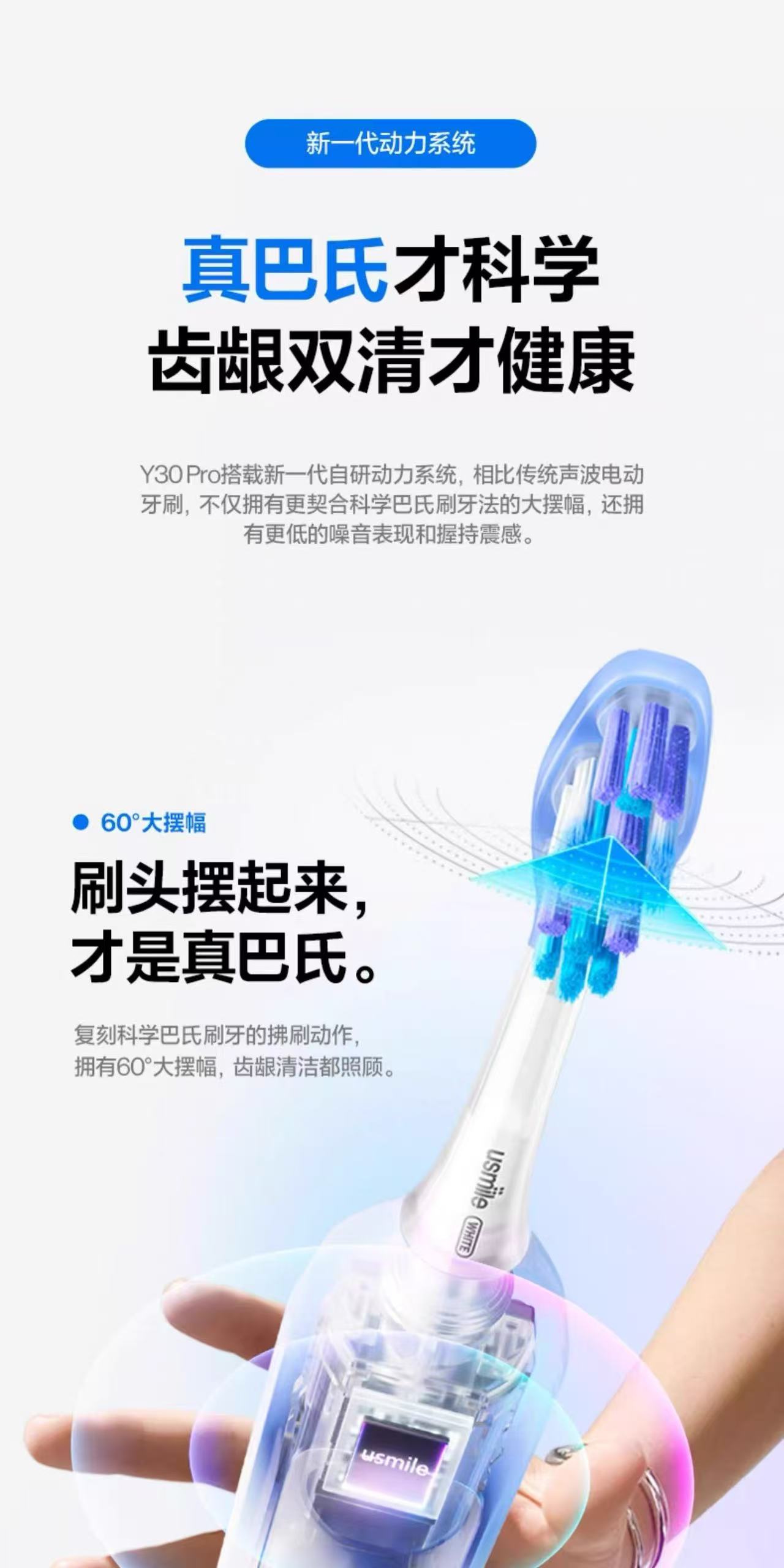 商品名称:(超运·禾贸)usmile笑容加电动牙刷(成人)Y30 PRO极光蓝 新动力大摆幅 全智能模式 情侣送男女友礼物