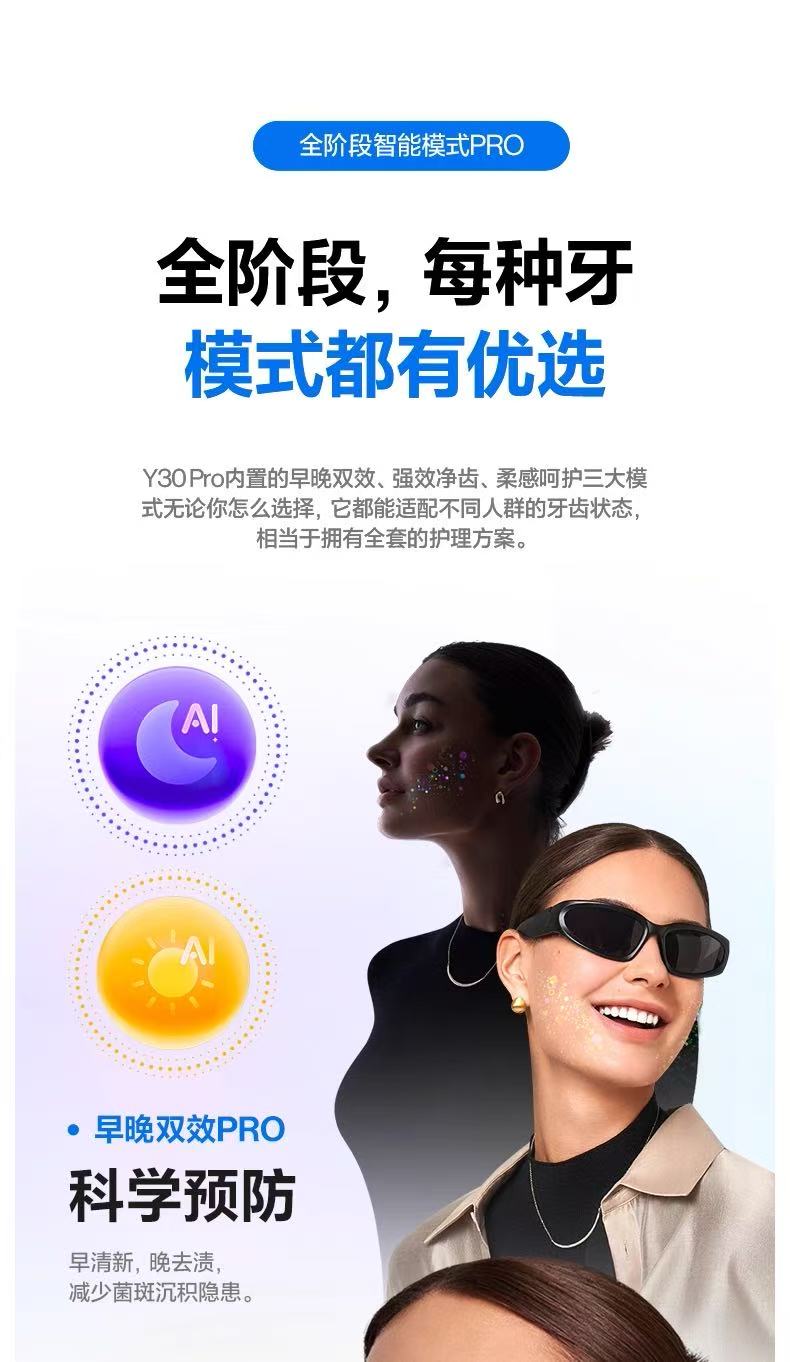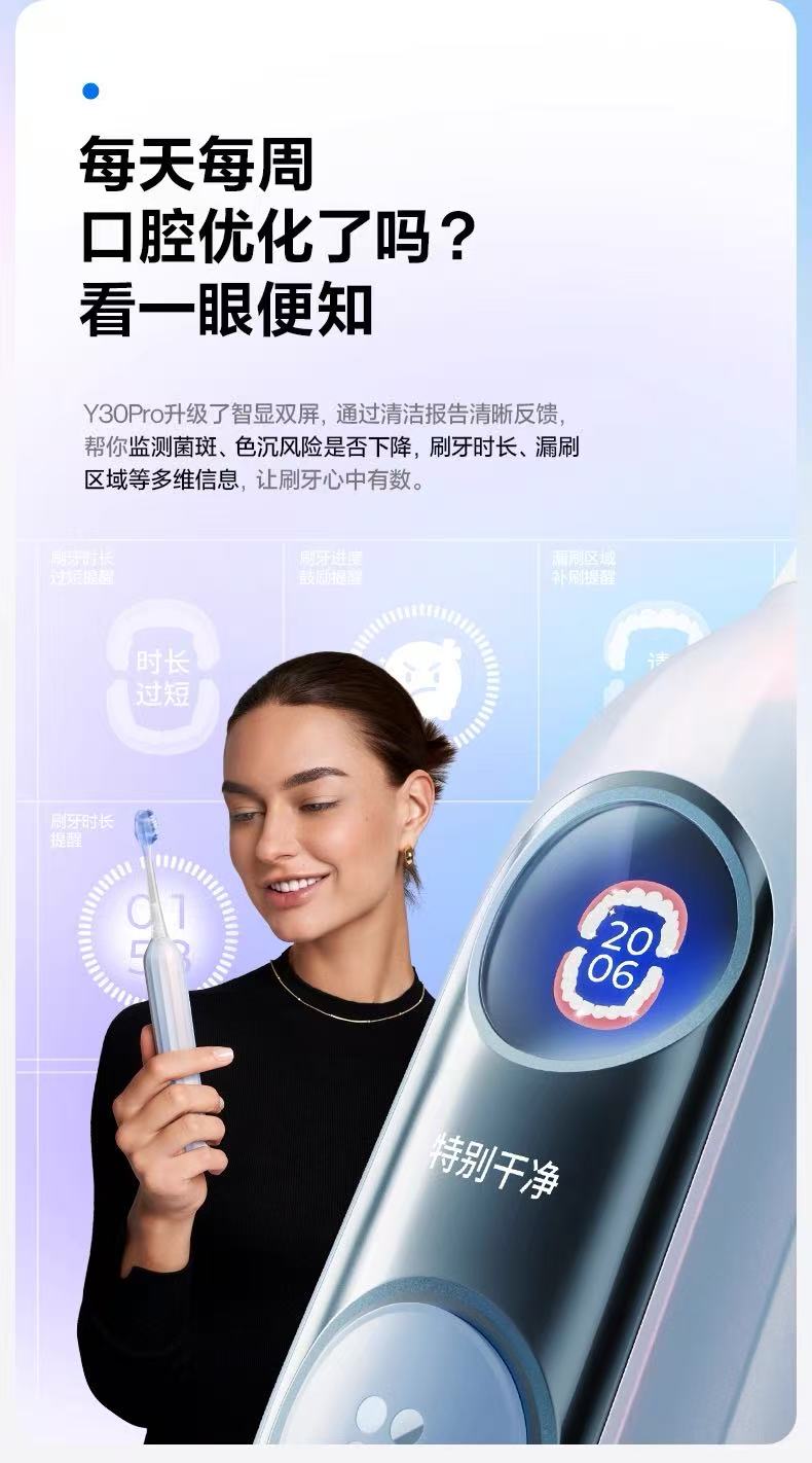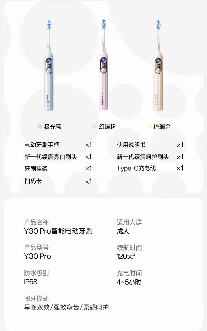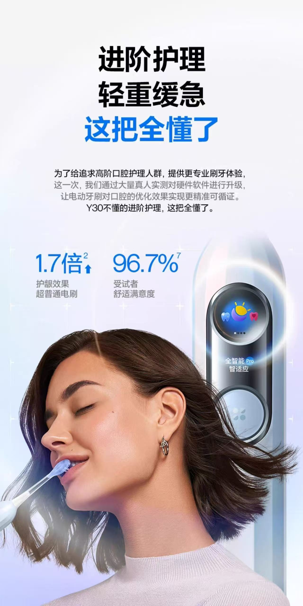 商品名称:(超运·禾贸)usmile笑容加电动牙刷(成人)Y30 PRO极光蓝 新动力大摆幅 全智能模式 情侣送男女友礼物