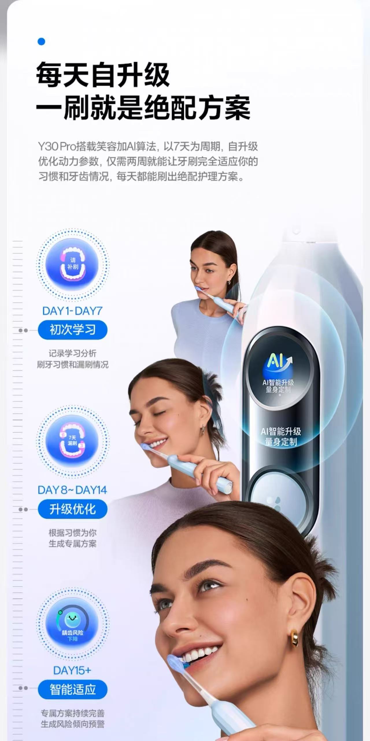 (超运·禾贸)usmile笑容加电动牙刷(成人)Y30 PRO极光蓝 新动力大摆幅 全智能模式 情侣送男女友礼物