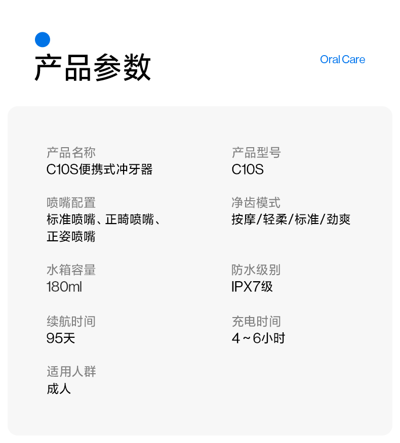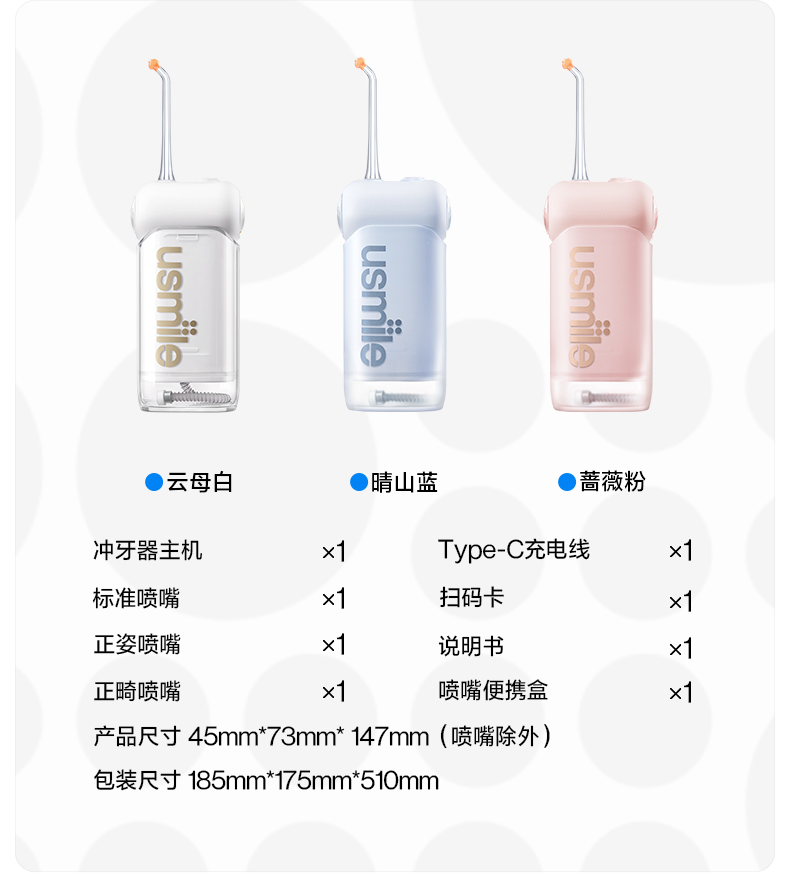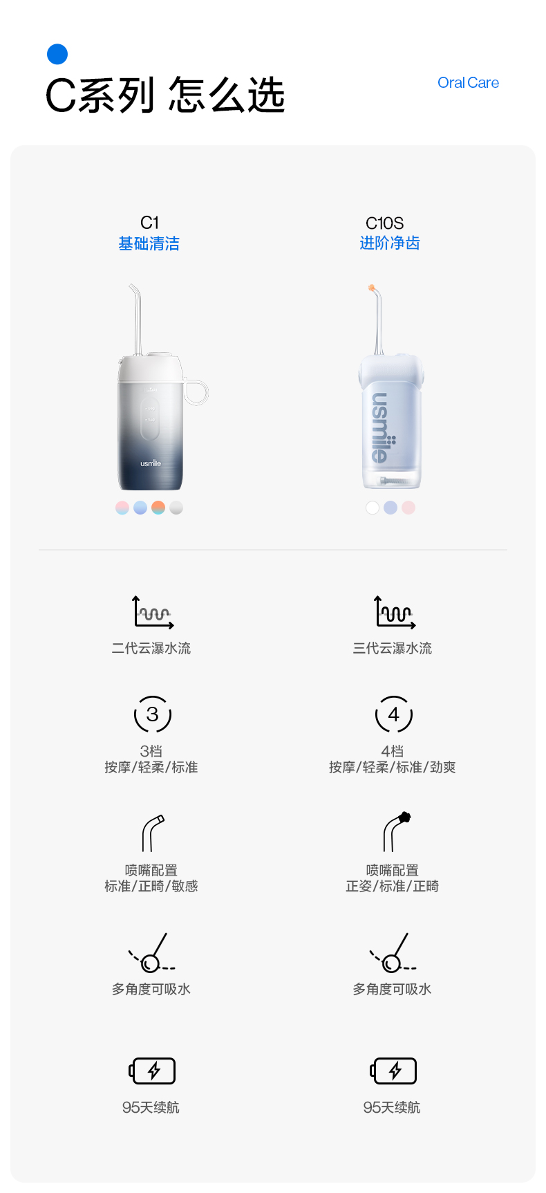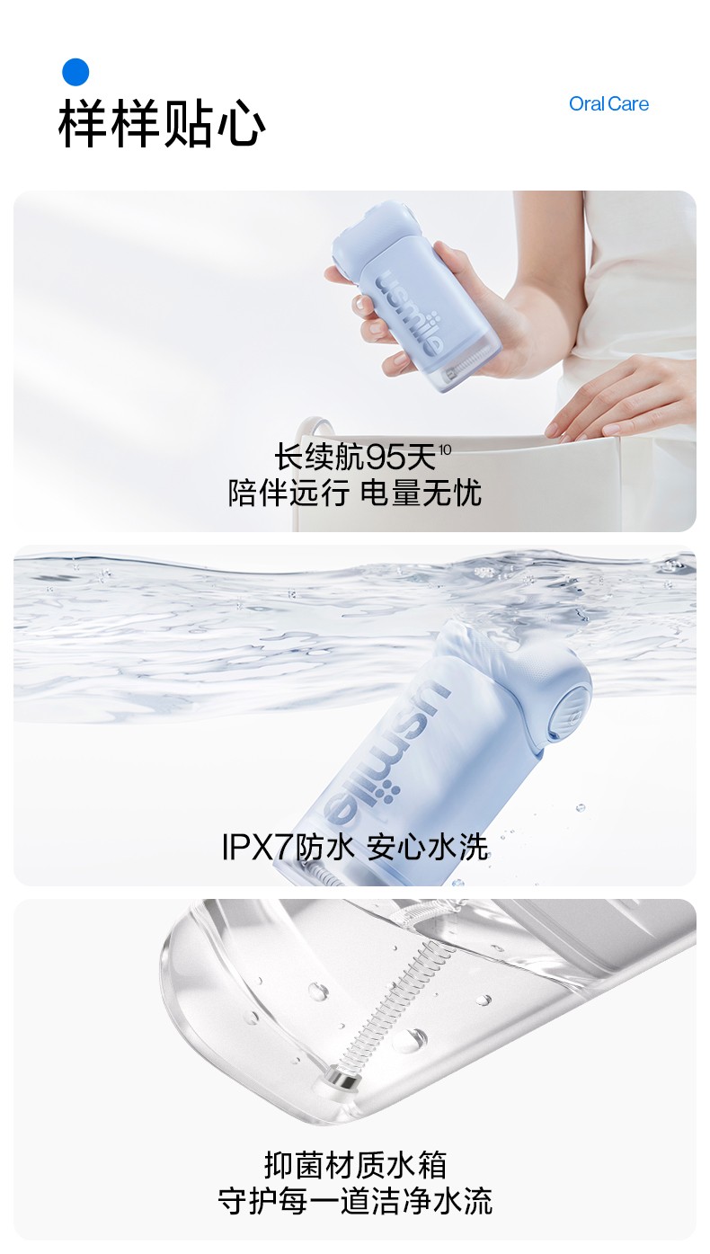商品名称:(超运·禾贸)usmile笑容加冲牙器C10S晴山蓝 伸缩便携式冲牙器