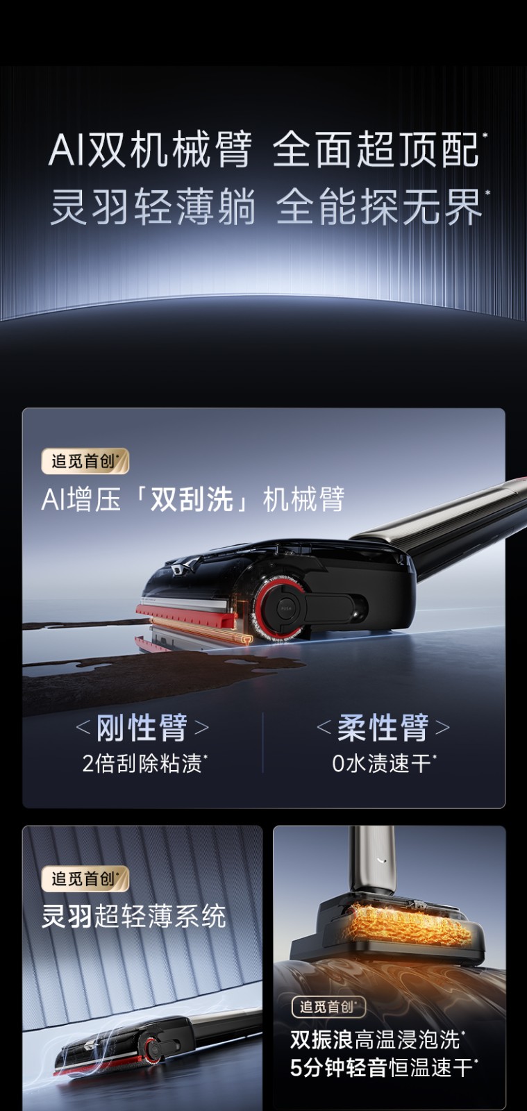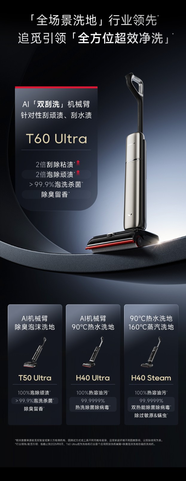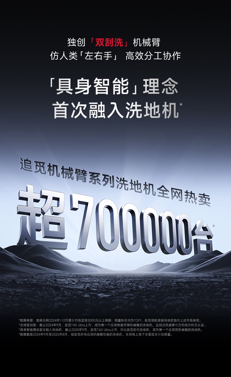 (汇景缘)追觅洗地机T60 Ultra双机械臂超薄洗拖吸一体自动清洗拖地机家用扫地机器人