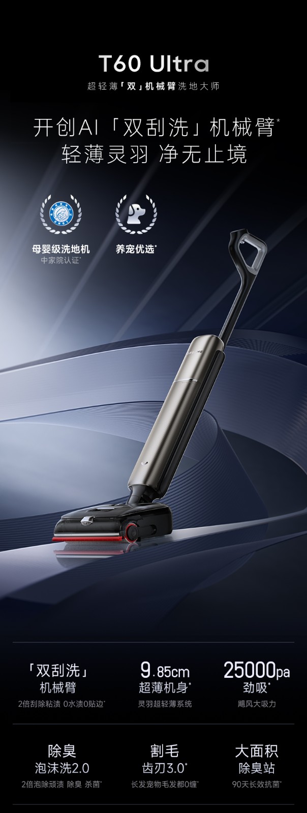 商品名称:(汇景缘)追觅洗地机T60 Ultra双机械臂超薄洗拖吸一体自动清洗拖地机家用扫地机器人