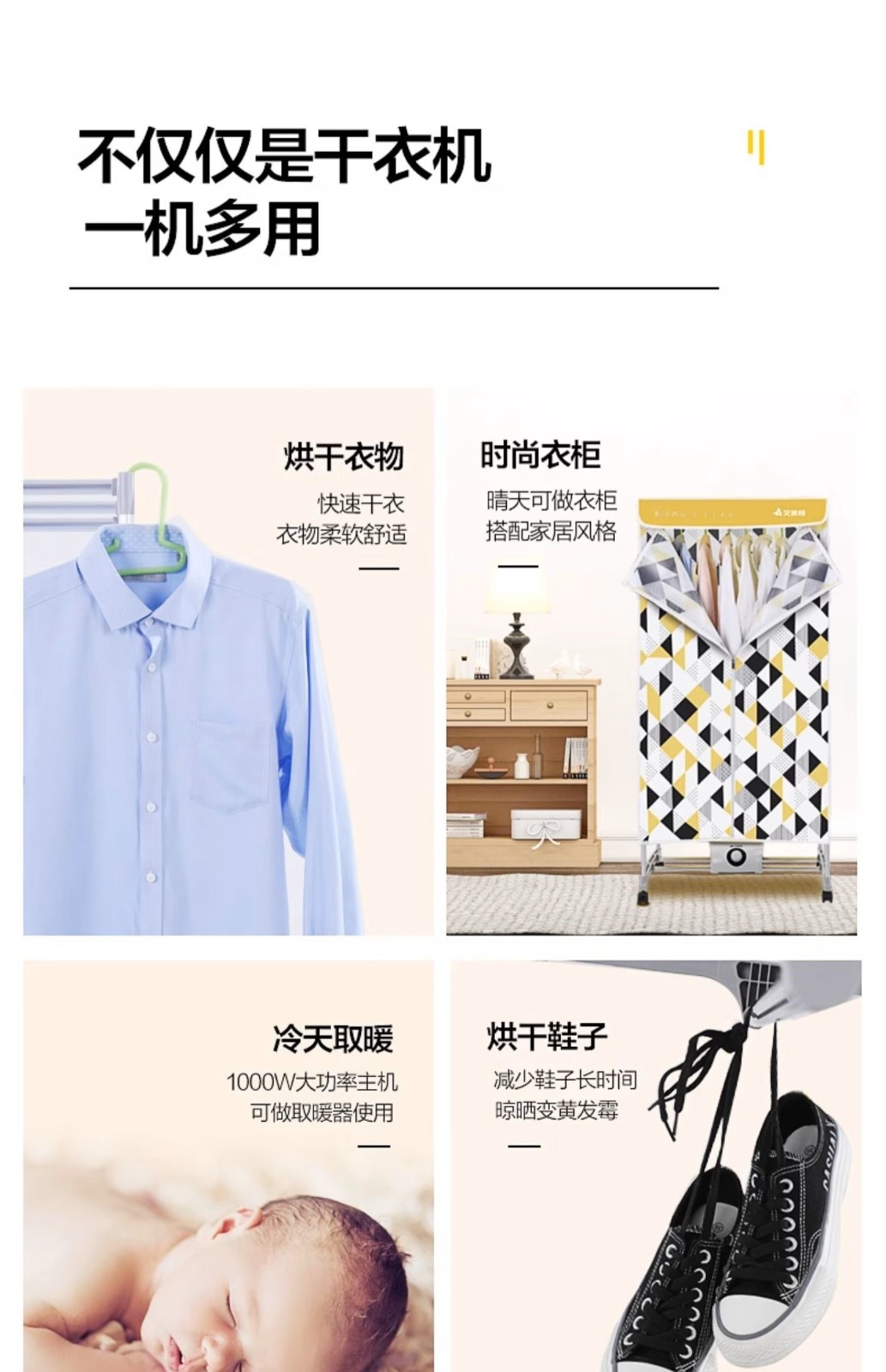 商品名称:(康恩)艾美特烘干机家用快速干器烘衣服烘烤衣柜风干器双层大容量干衣机WGY10-X2-1(1010W)