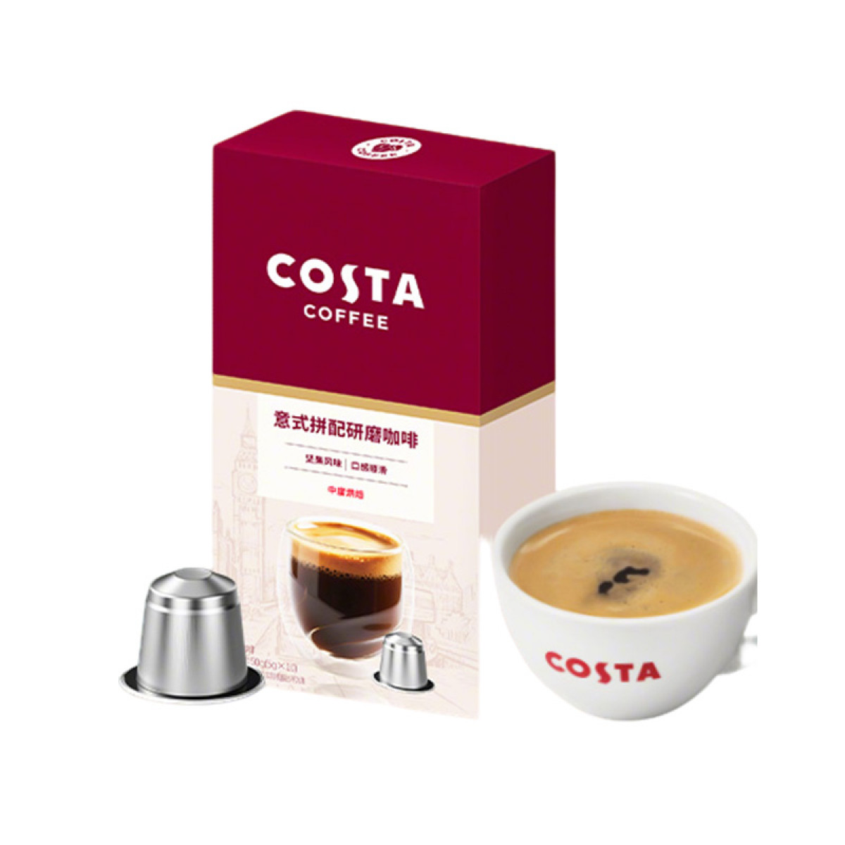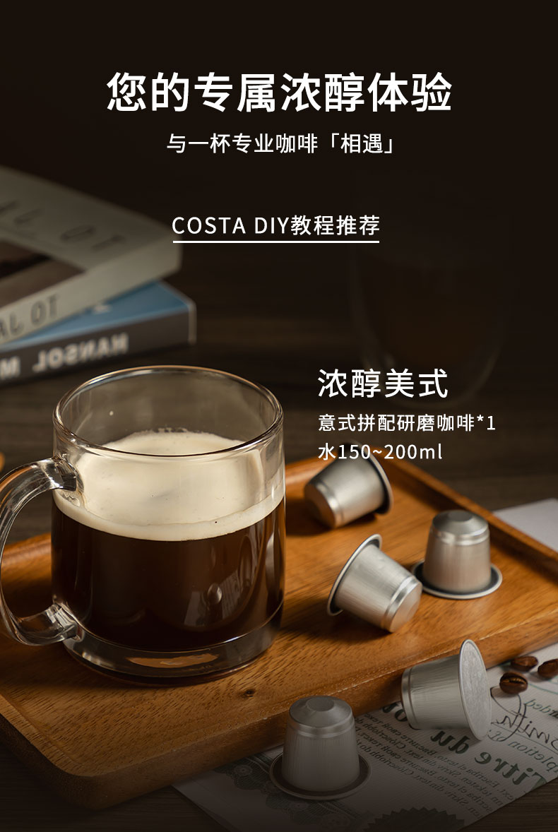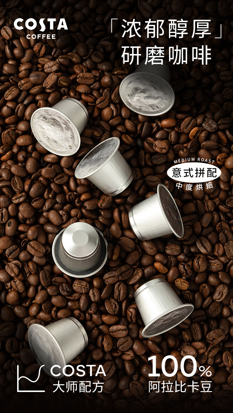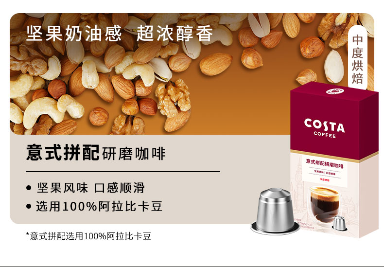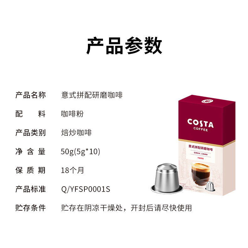 商品名称:(超运·禾贸)costa 意式拼配胶囊咖啡5g*10盒 中烘100%阿拉比卡坚果风味nespresso胶囊机