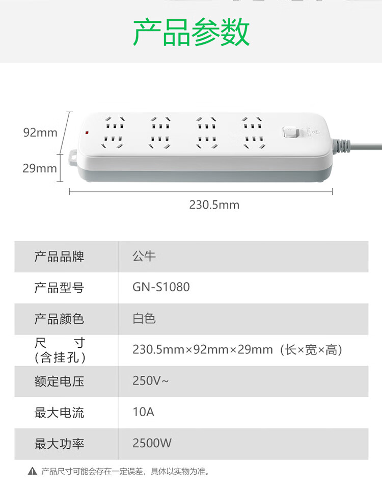 商品名称:(巨邦佑)BJ+公牛(BULL)新国标插座GN-S1080 全长3M 8位总控 插座插线板插排排插接线板拖线板