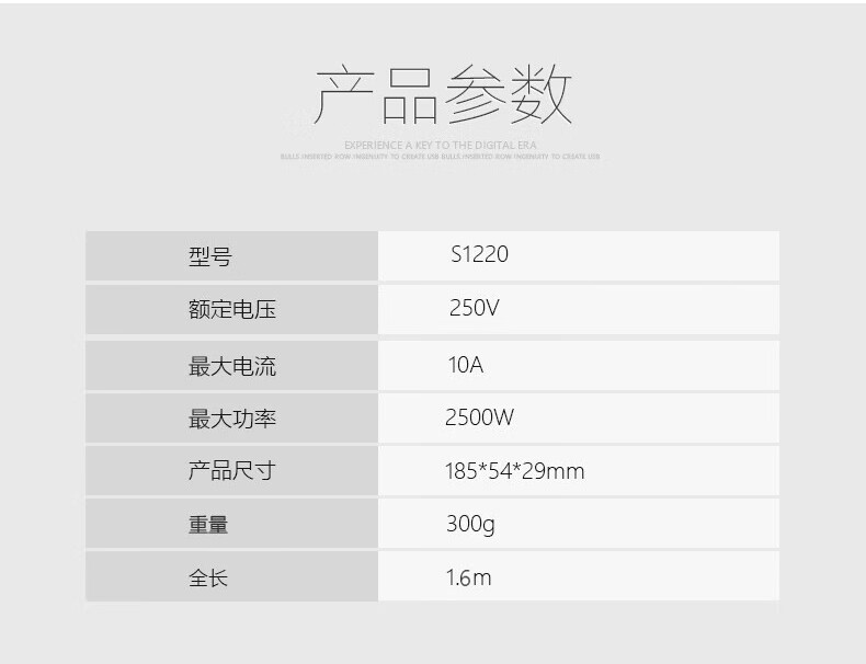 商品名称:(巨邦佑)BJ+公牛(BULL)新国标插座 GN-S1220 1.6M 4位总控