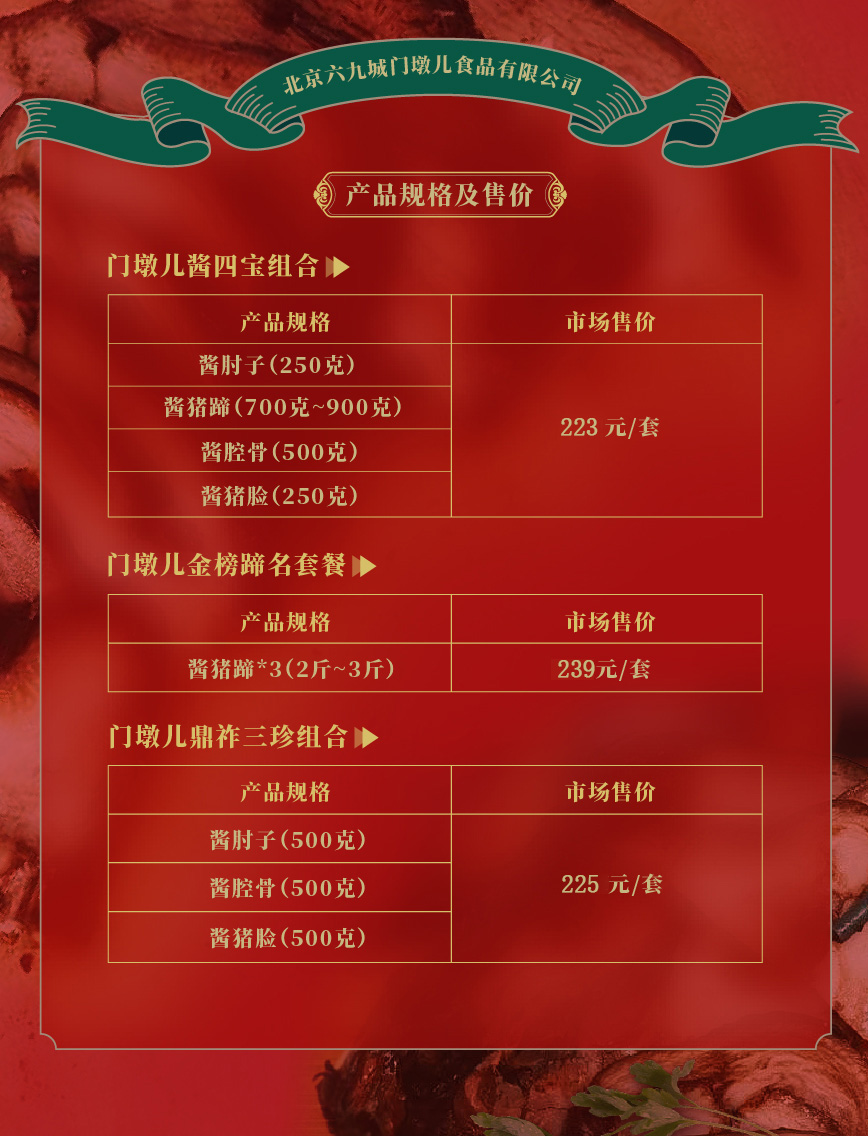 商品名称:(巨邦佑)BJ+门墩儿 四宝组合套餐 酱肘子酱猪蹄酱腔骨酱猪脸 猪蹄开袋即食