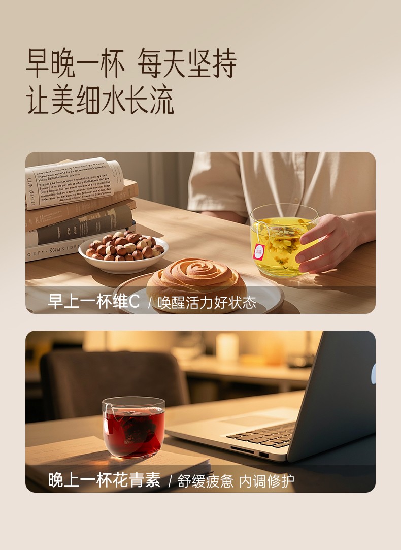 (汇景缘)金燕耳K早C晚A代用茶 【早C唤醒】金桔柠檬沙棘茶30小袋盒【晚A修护】桑椹刺梨玫瑰茶30小袋盒