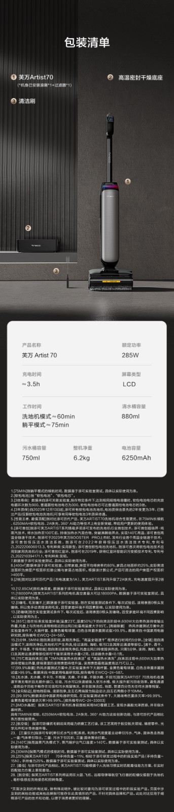 商品名称:(汇景缘)添可芙万Artist70艺术家【360°全向AI助力 75min续航 0缠毛躺平】洗地机自动清洗吸拖洗一体拖地机器人