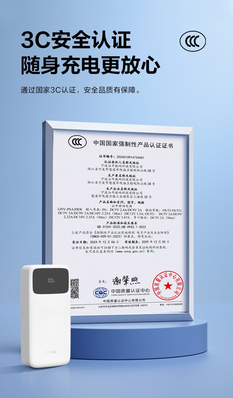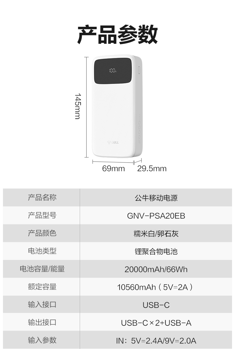 商品名称:(超运·禾贸)公牛(BULL)PSA20EB盒装糯米白22.5W快充移动电源 20000mAh 充电宝