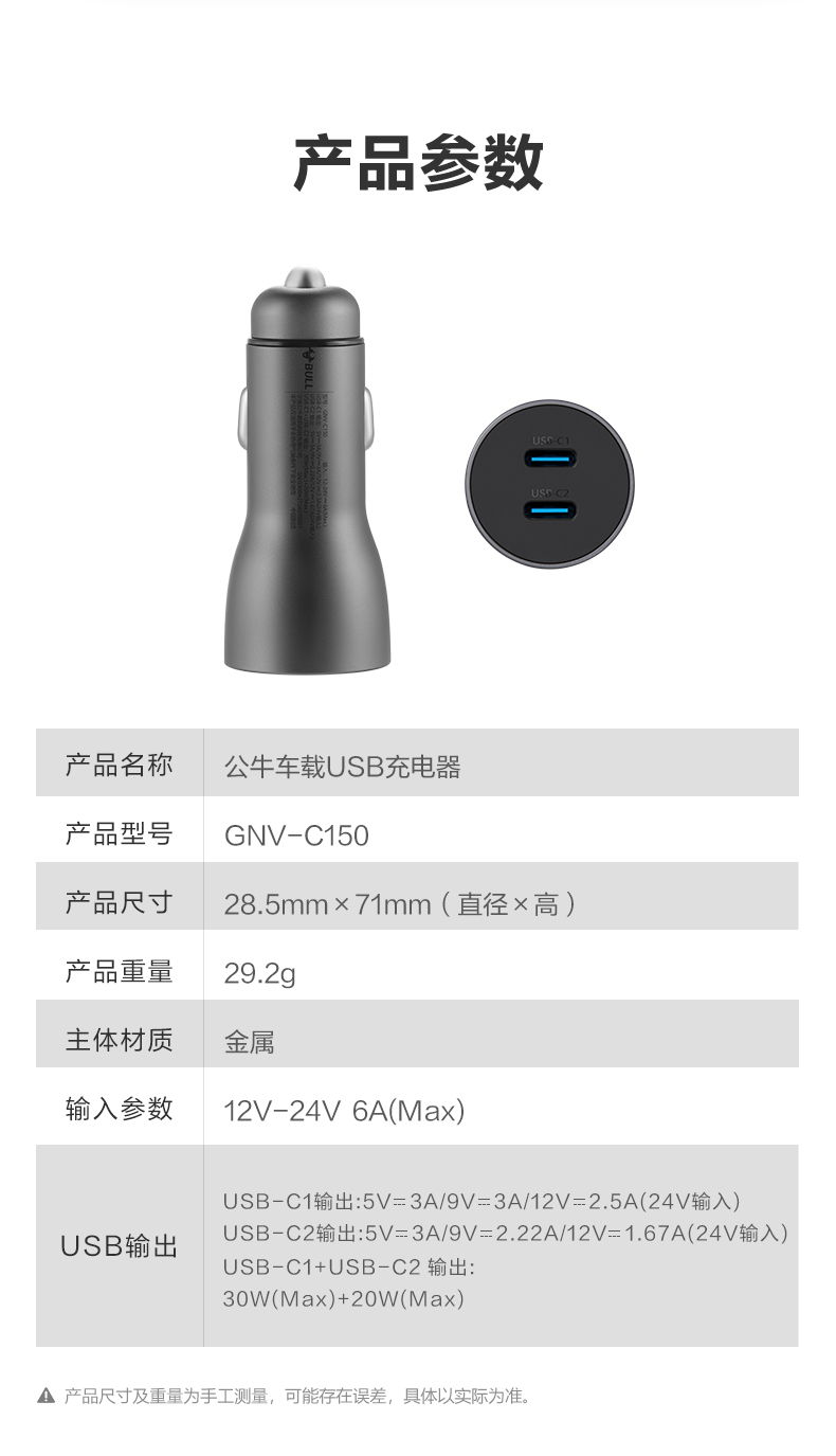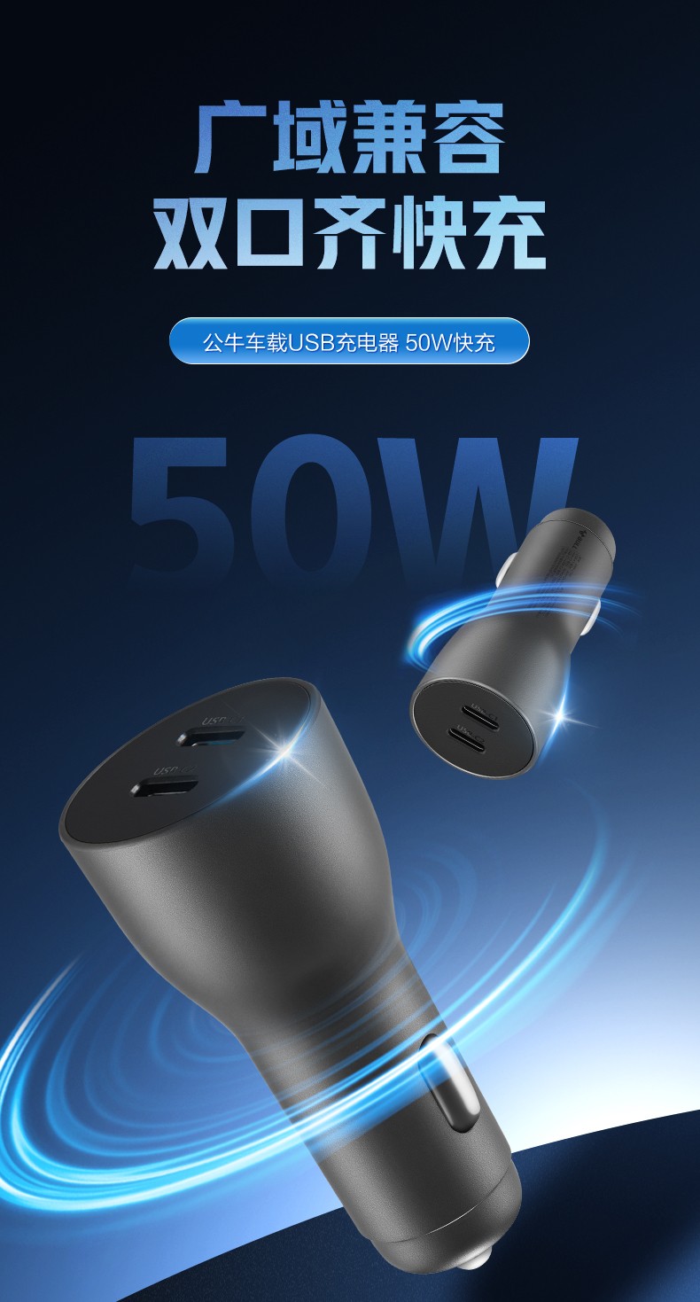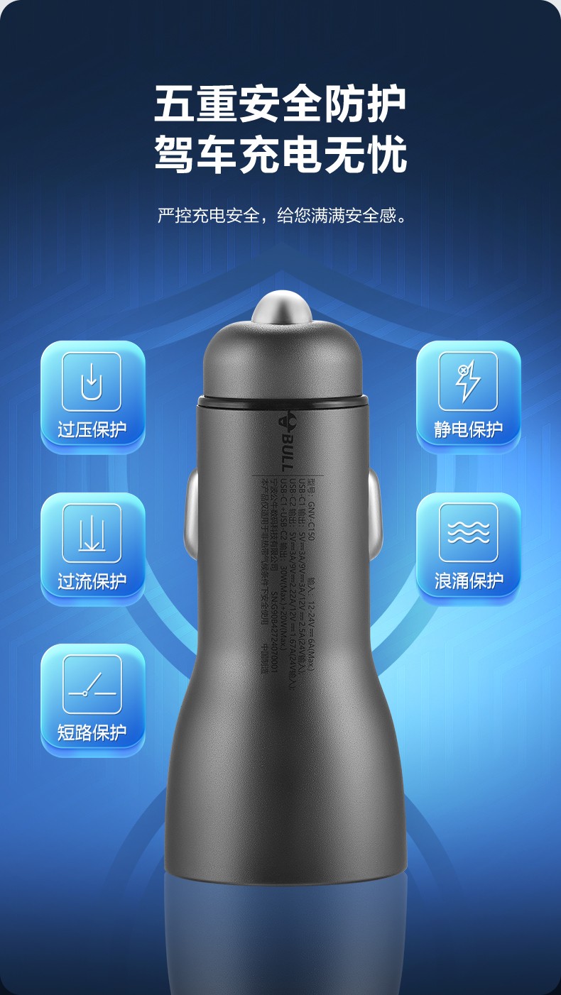 商品名称:(超运·禾贸)公牛(BULL)双C口50W快充车载充电器C150 USB车充点烟器插头多口转换器快充适配苹果华为小米