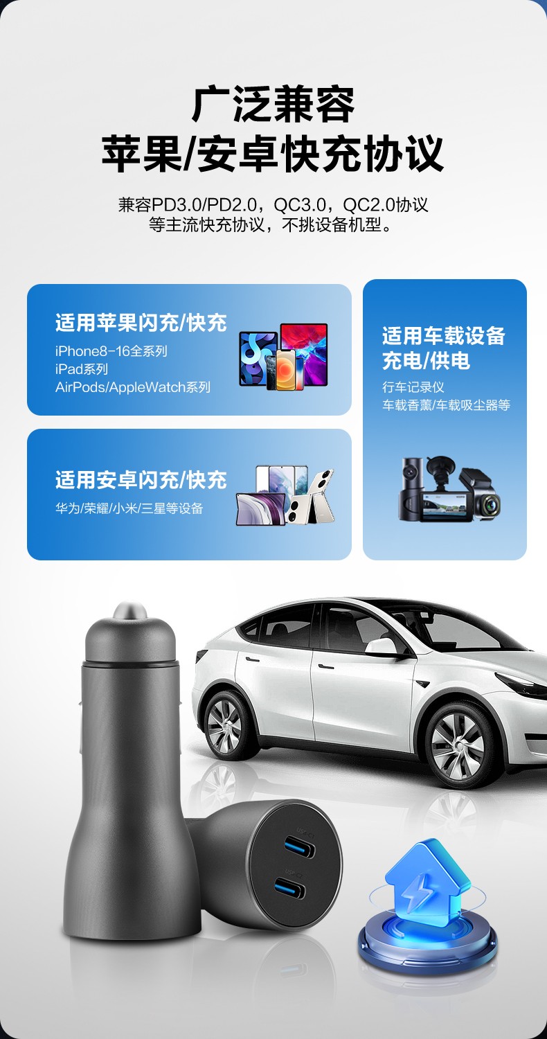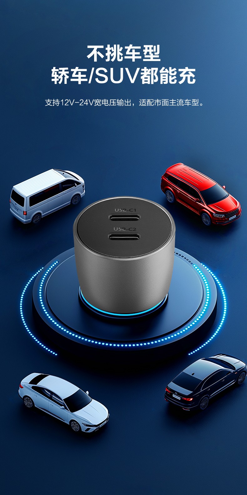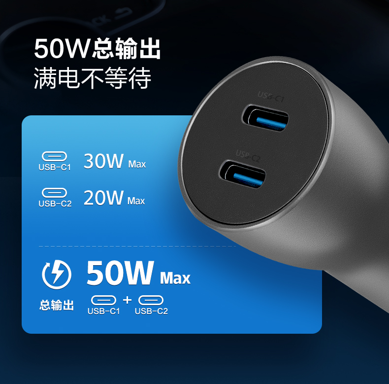 商品名称:(超运·禾贸)公牛(BULL)双C口50W快充车载充电器C150 USB车充点烟器插头多口转换器快充适配苹果华为小米