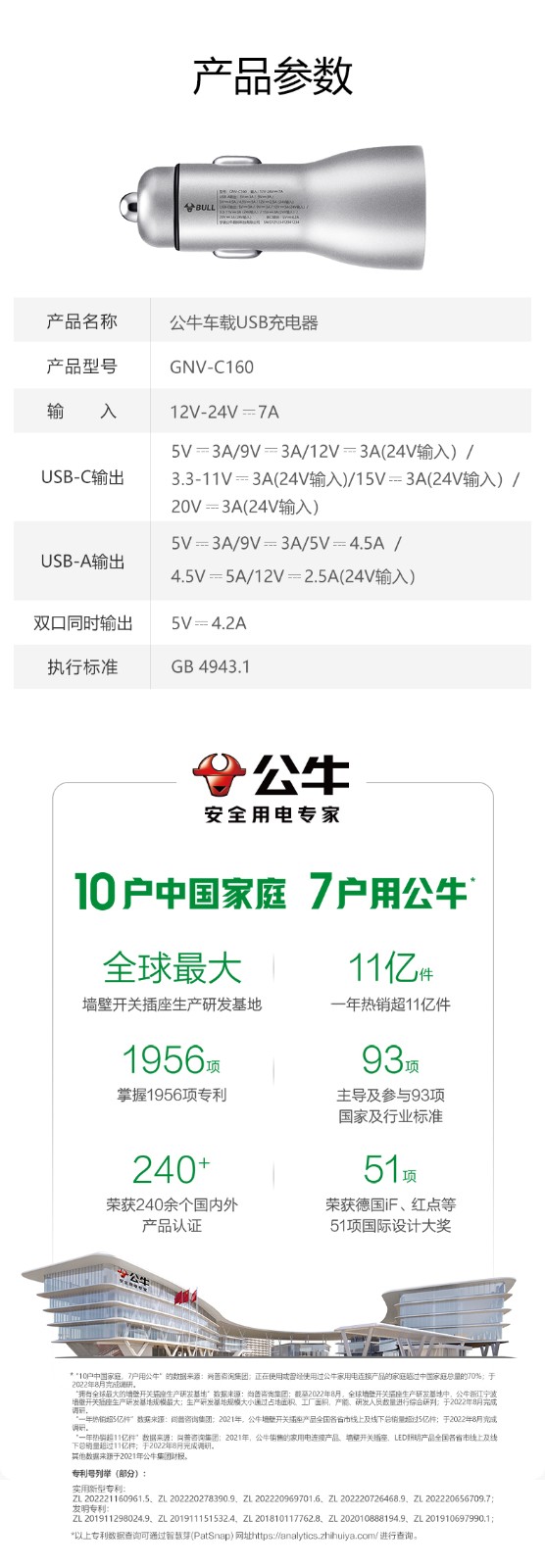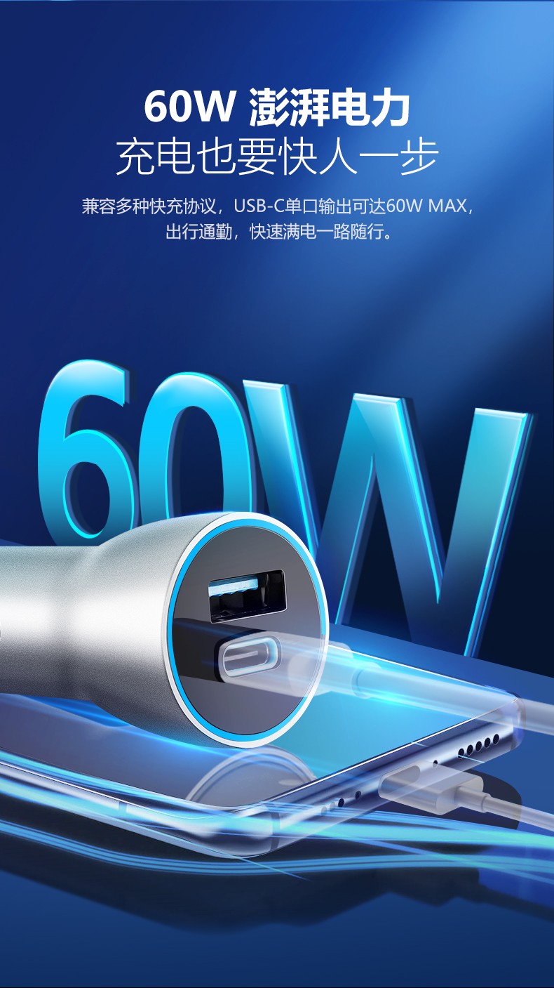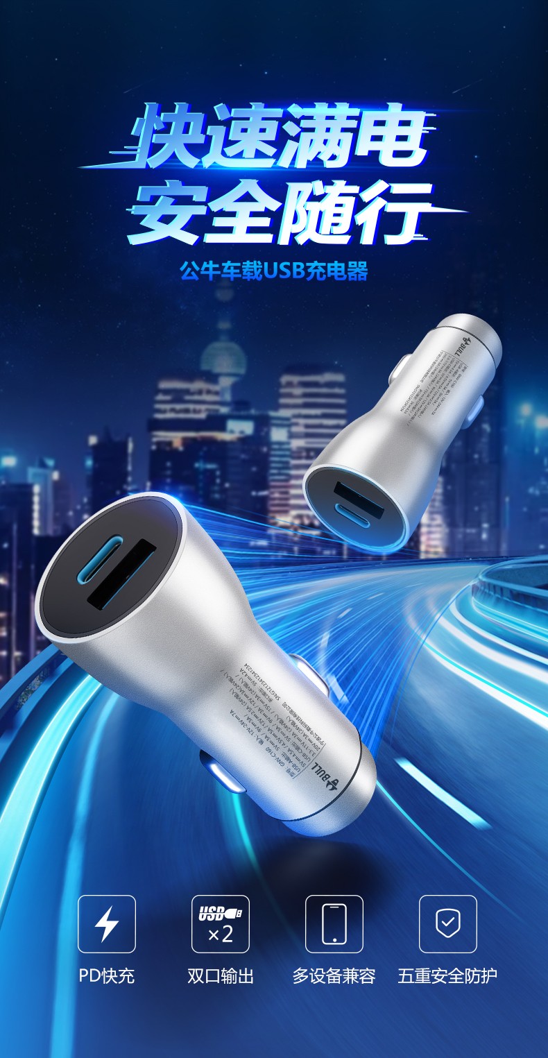 商品名称:(超运·禾贸)公牛(BULL)60W快充车载充电器C160 USB车充点烟器插头多口转换器快充适配苹果华为小米